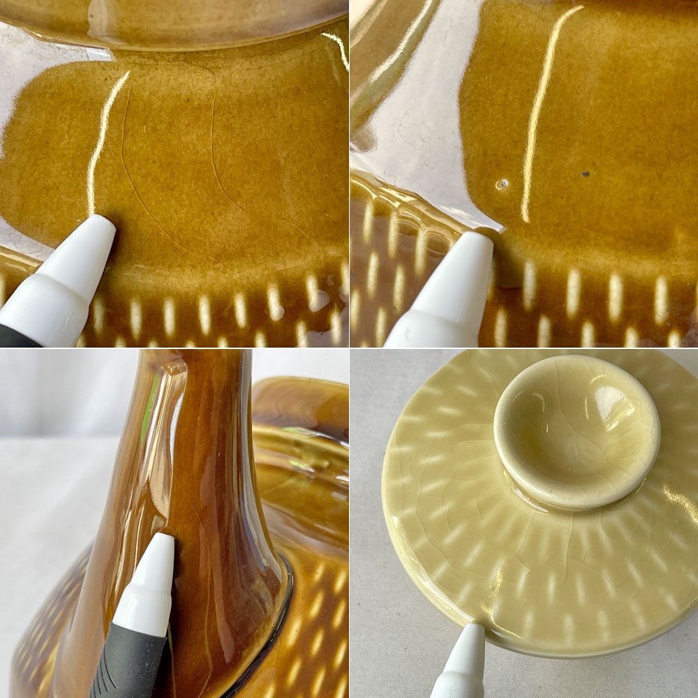 こちらはビンテージ品となります。使用に伴う擦れの他、細かな傷や釉薬表面の貫入、ペイントロス、わずかな水痕などはございますが、いずれも大きく目立つものではございません。割れ欠け等は無く、引き続き雰囲気を楽しみながらお使い頂ける、ビンテージ品として概ね良好なコンディションを保っております。