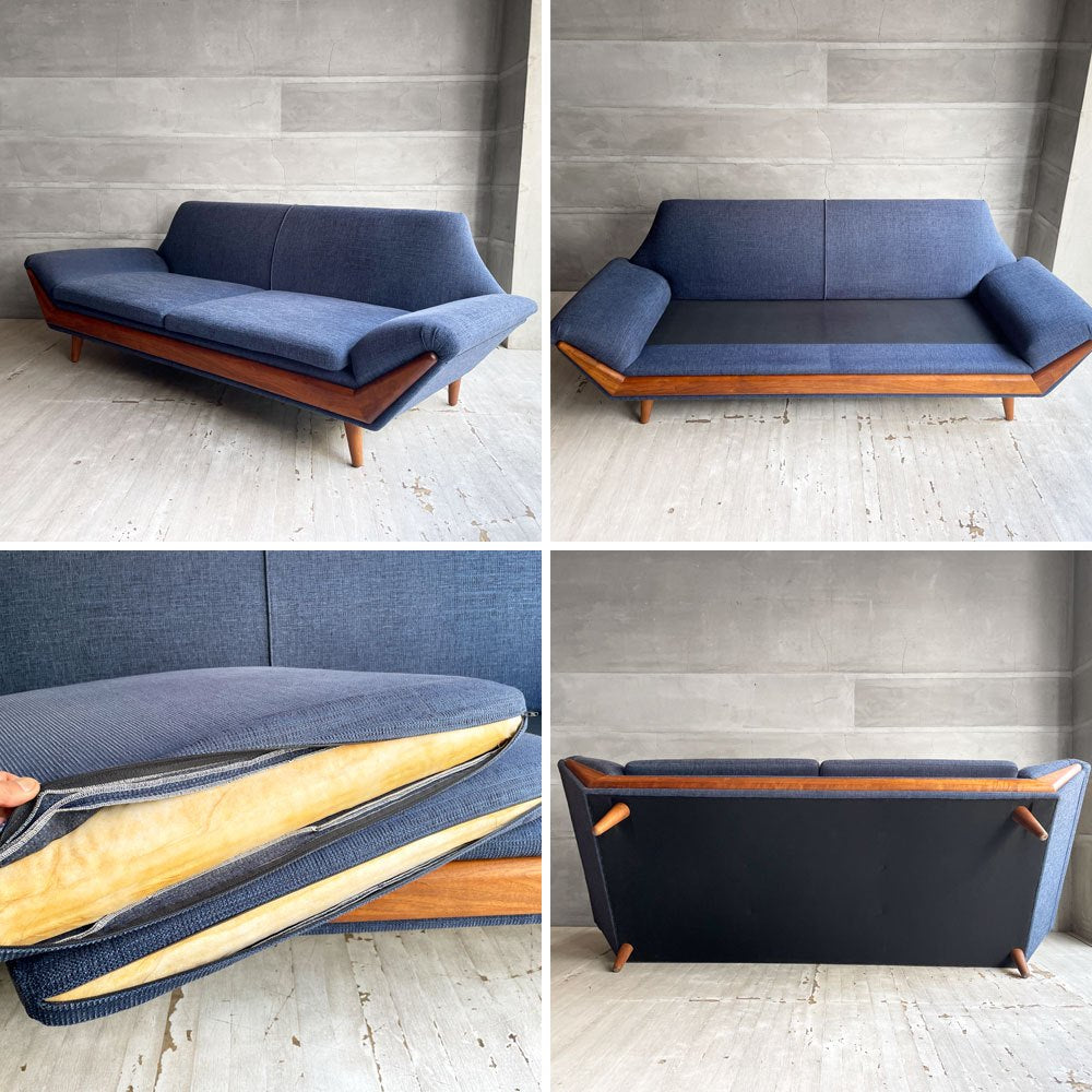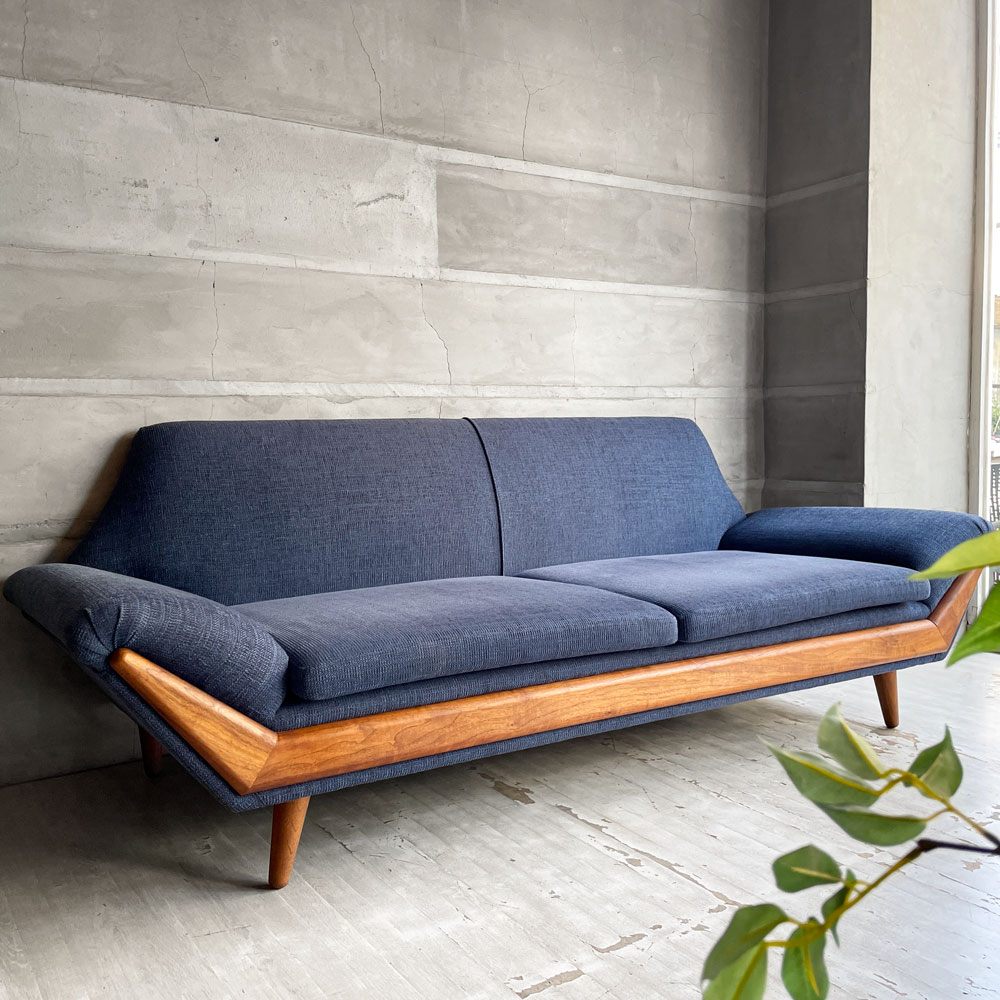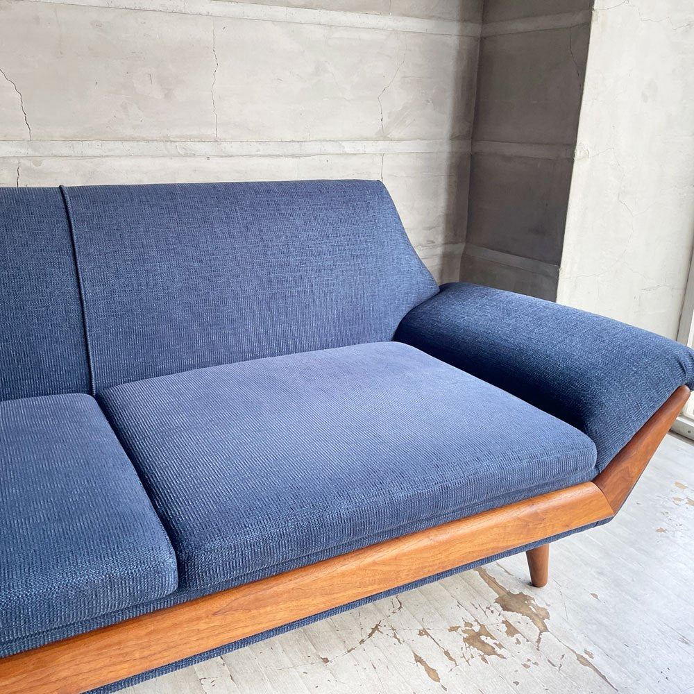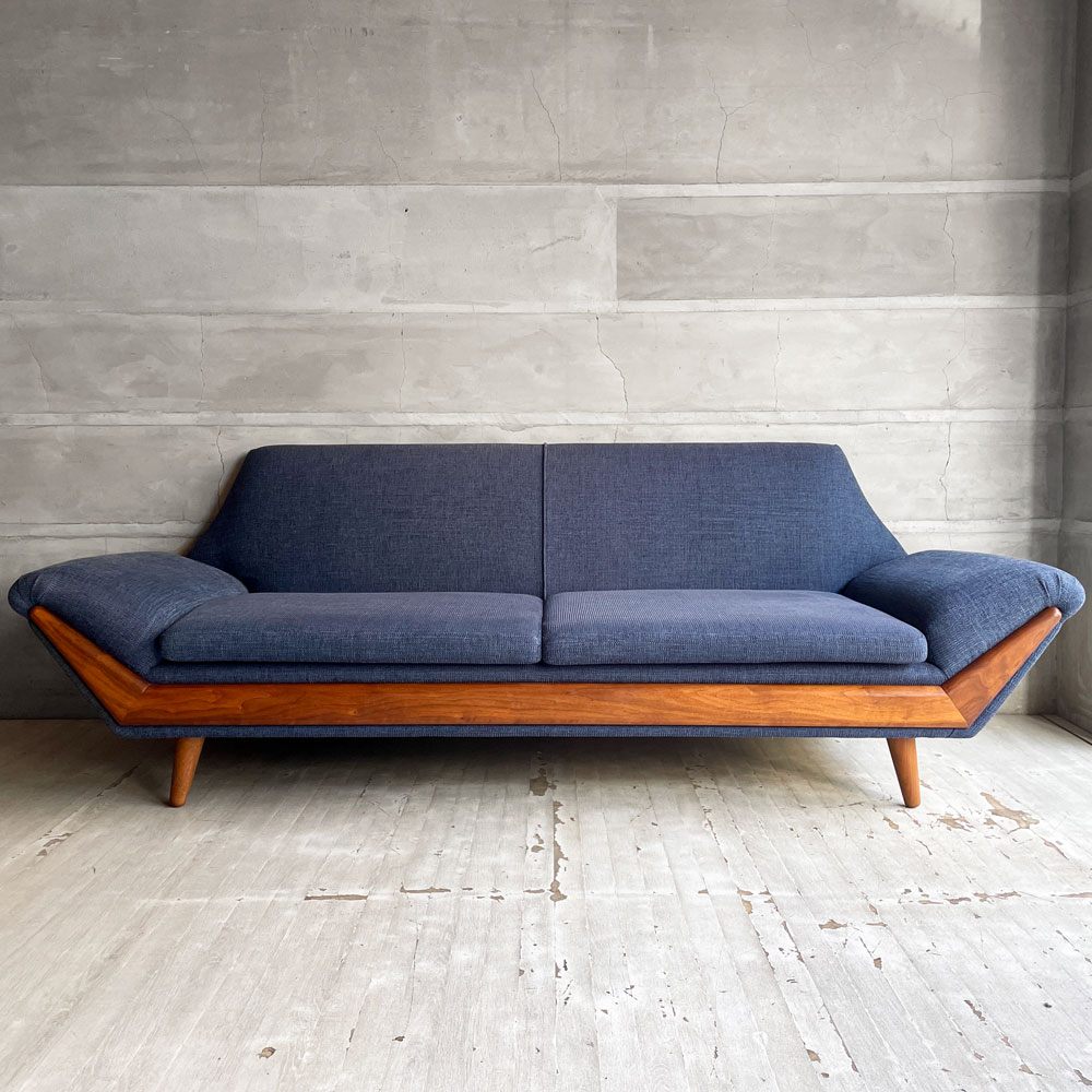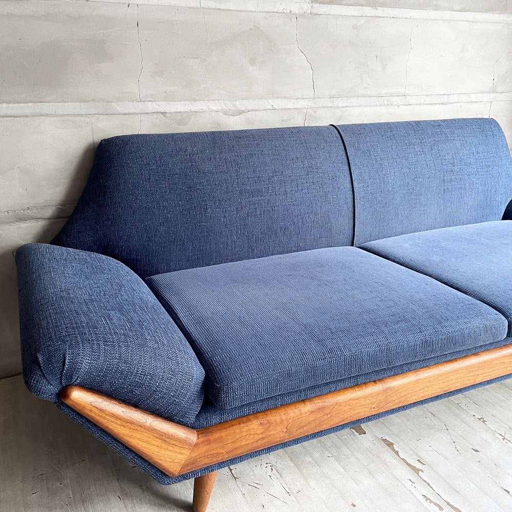 パームスプリングス Palm Springs オリジナルソファ 3Pソファ 3人掛け ネイビー系ファブリック ウォールナット ビンテージデザイン ミッドセンチュリースタイル ♪