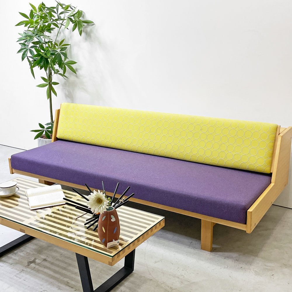 ゲタマ GETAMA GE258 デイベッド 3Pソファ ビーチ材 角脚 ミナペルホネン ドップ タンバリン ウレタンクッション ビンテージ ハンス.J.ウェグナー デンマーク 北欧家具 ●