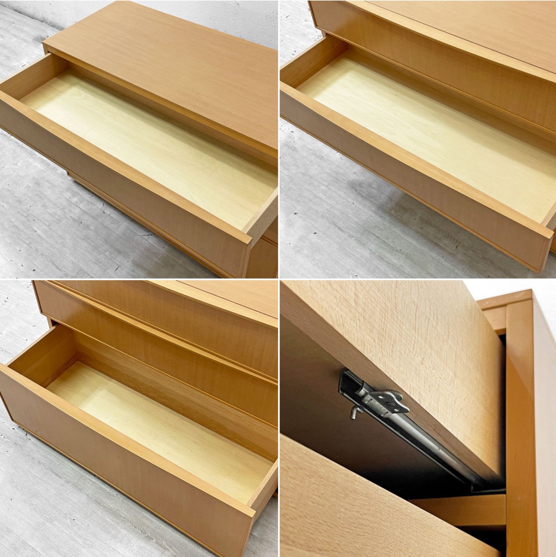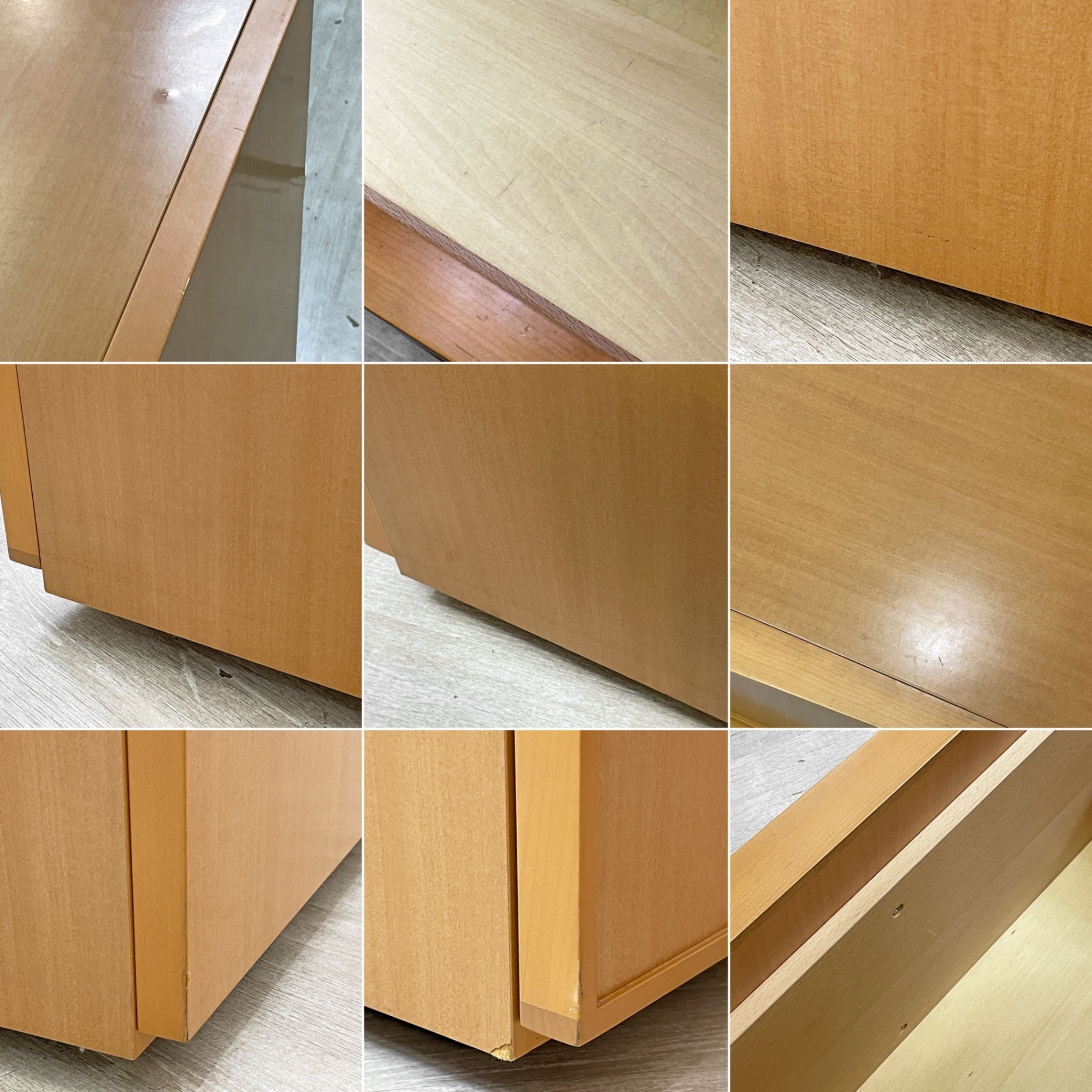 また、向かって左側の下部の角に突板の剥がれがございますが、大きく目立つものではなく、実用に影響もございません。