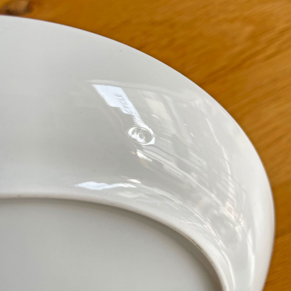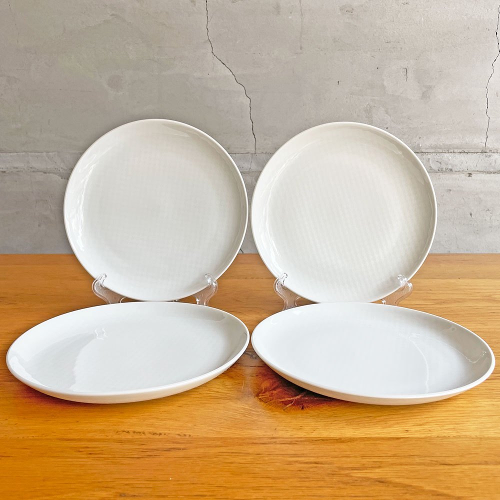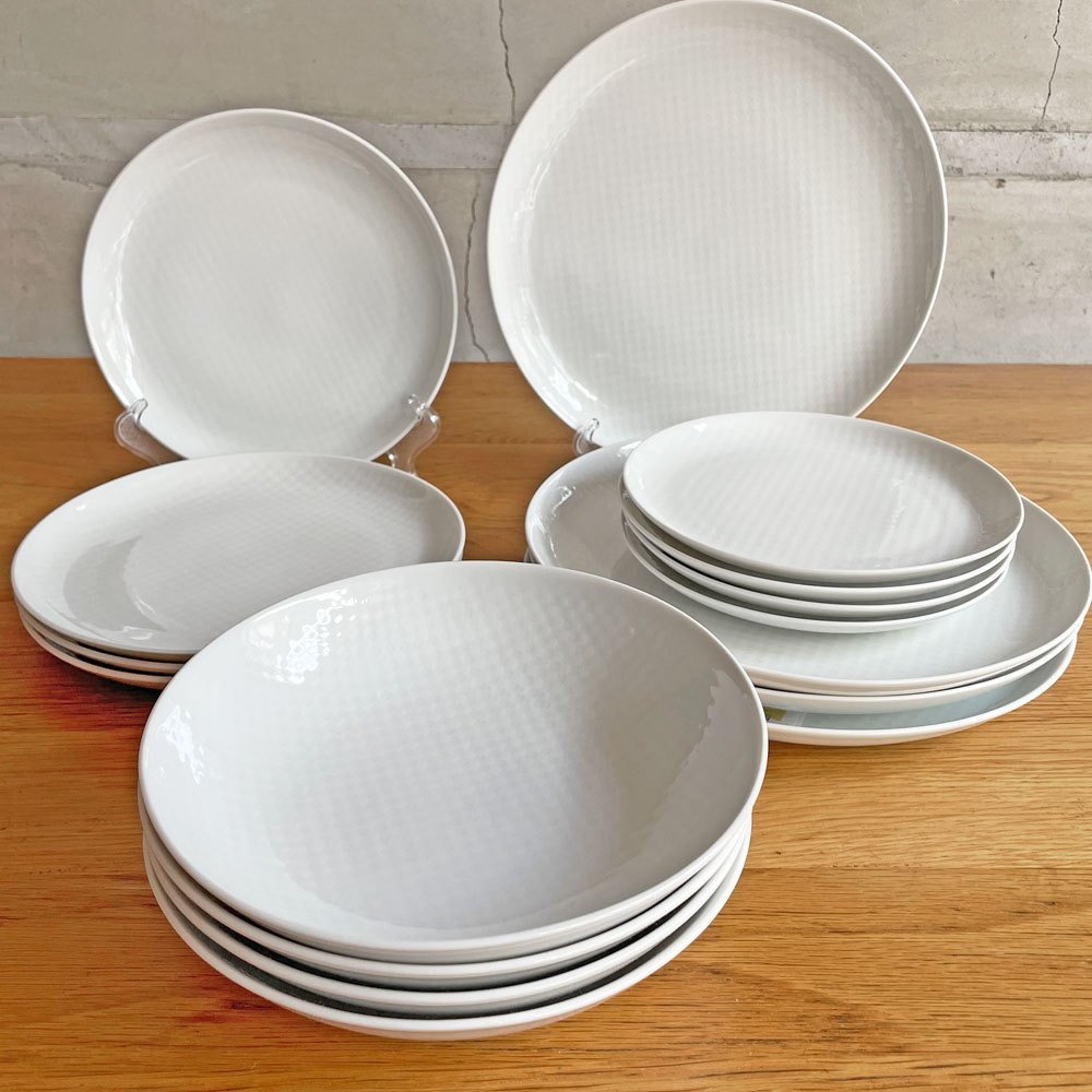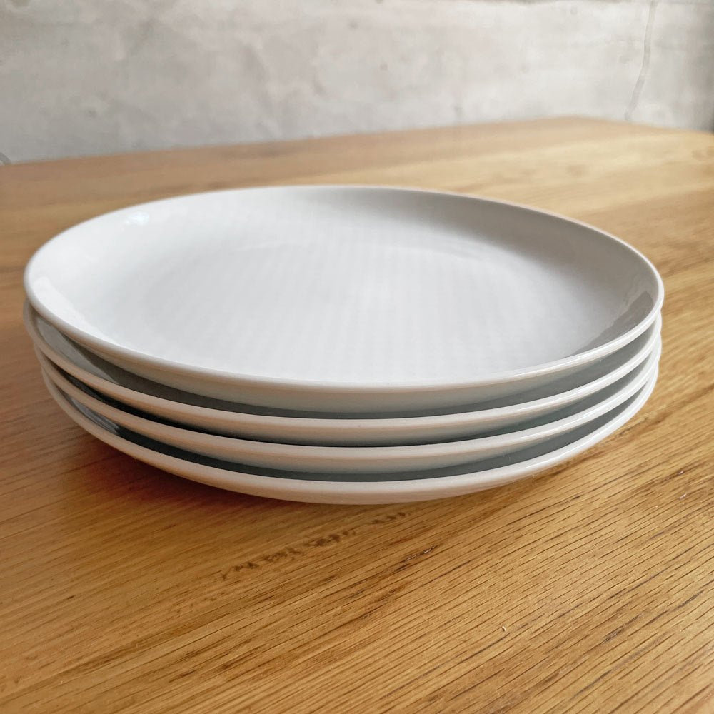 一見シンプルな白磁のプレートに見えますが、光に反射させると格子模様の型押しが浮き彫りになります。