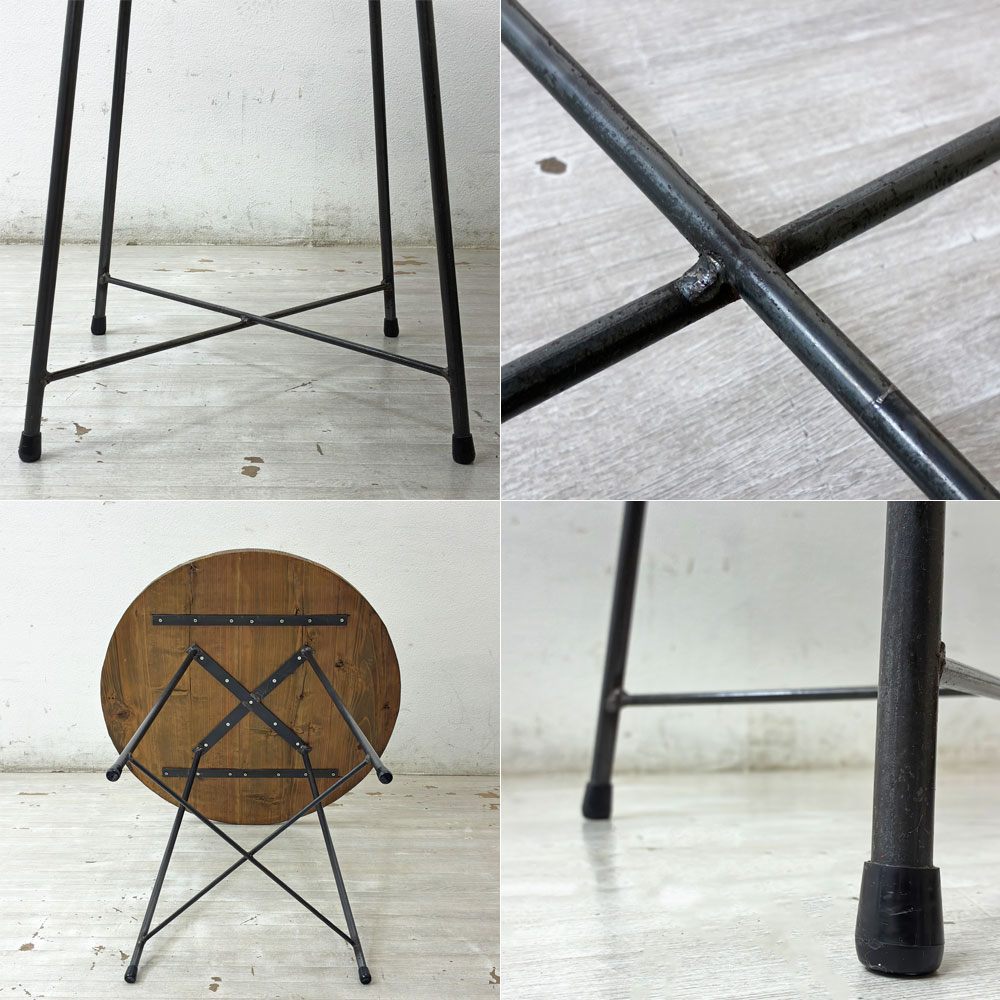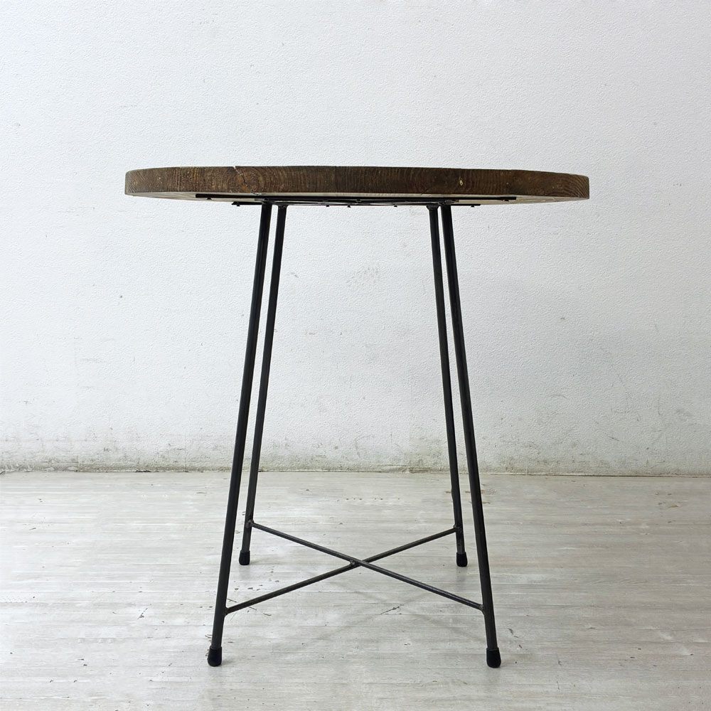 インダストリアルデザイン Industrial Design 古材×アイアン カフェテーブル ダイニングテーブル W76cm アトリエ 店舗什器 工業系 ●