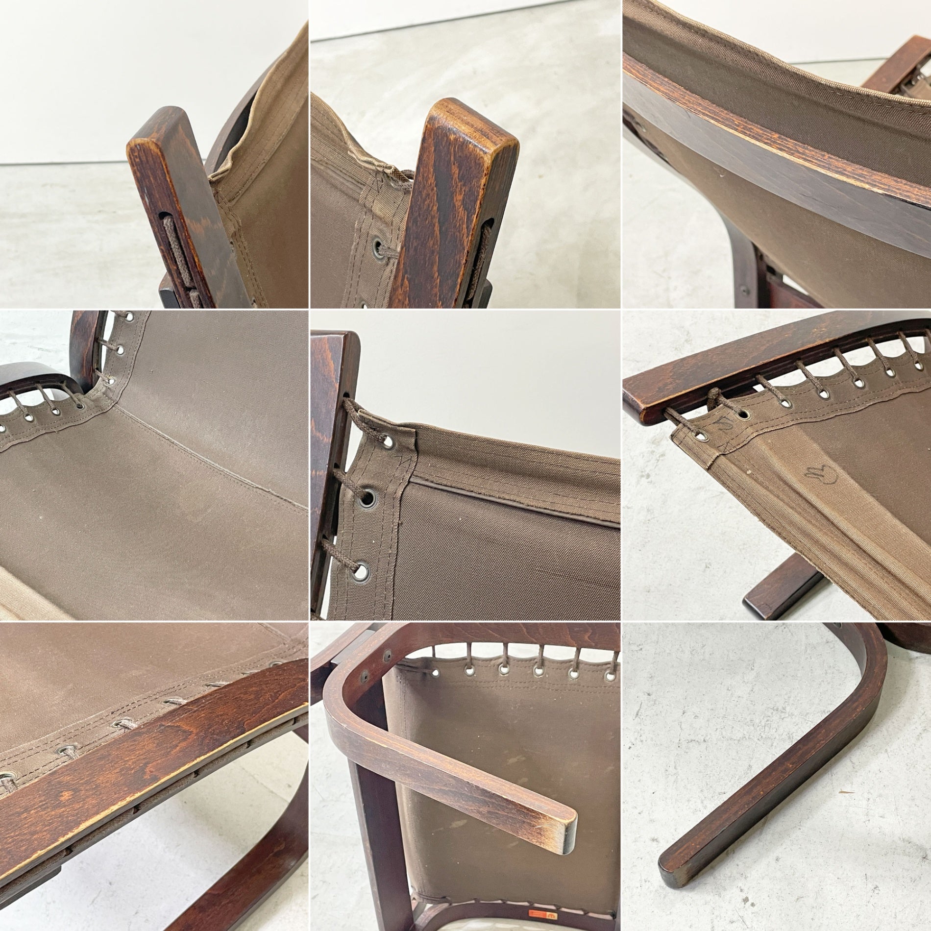 プライウッドの曲木による程よい撓り、厚みのある本革のクッションシート、チェア本体に張られた帆布生地とが相まって、ゆったり寛ぐことが出来る快適な座り心地を実現しています。