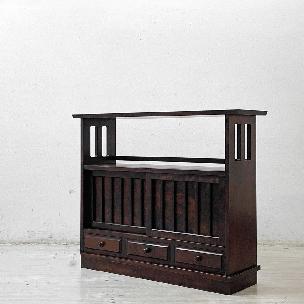 茶道具一式や食器が収納可能な充分なスペースと、ディスプレイも楽しめるオープンスペースも備えられています。