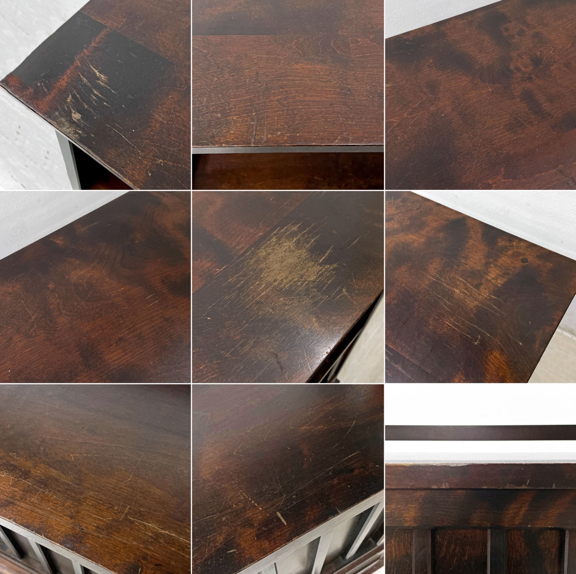使用に伴い、天板には線傷や擦れ、くすみ、表面にも同じく擦れや傷、打痕、ペイントロスが見受けられます。