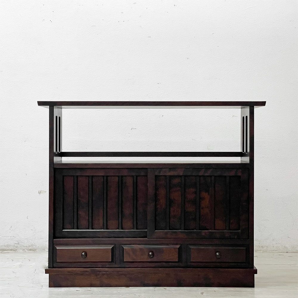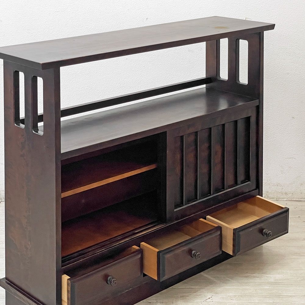北海道民芸家具 茶棚 HM108K サイドボード 飾り棚 無垢樺材 和家具 民藝家具 ●