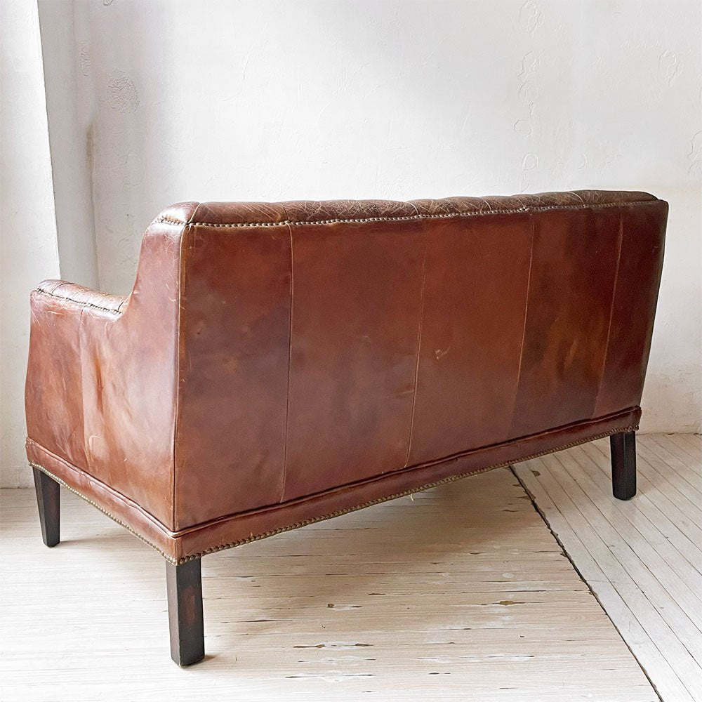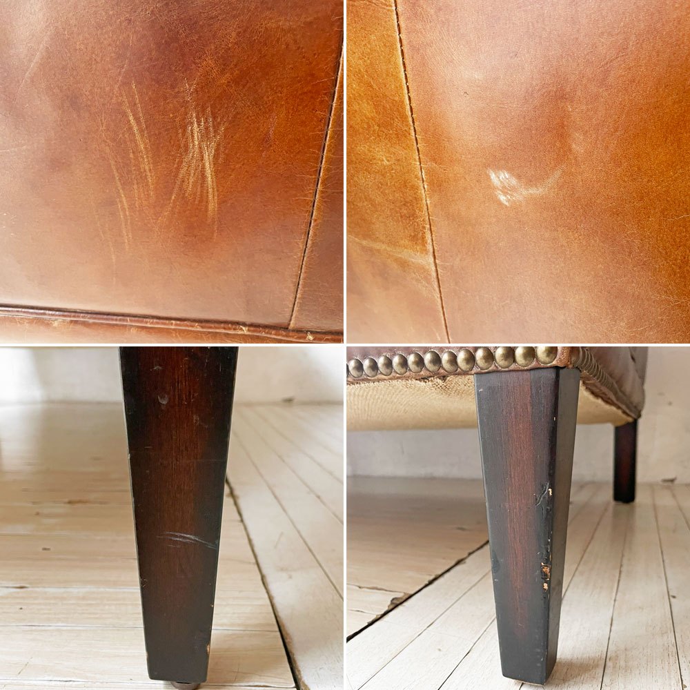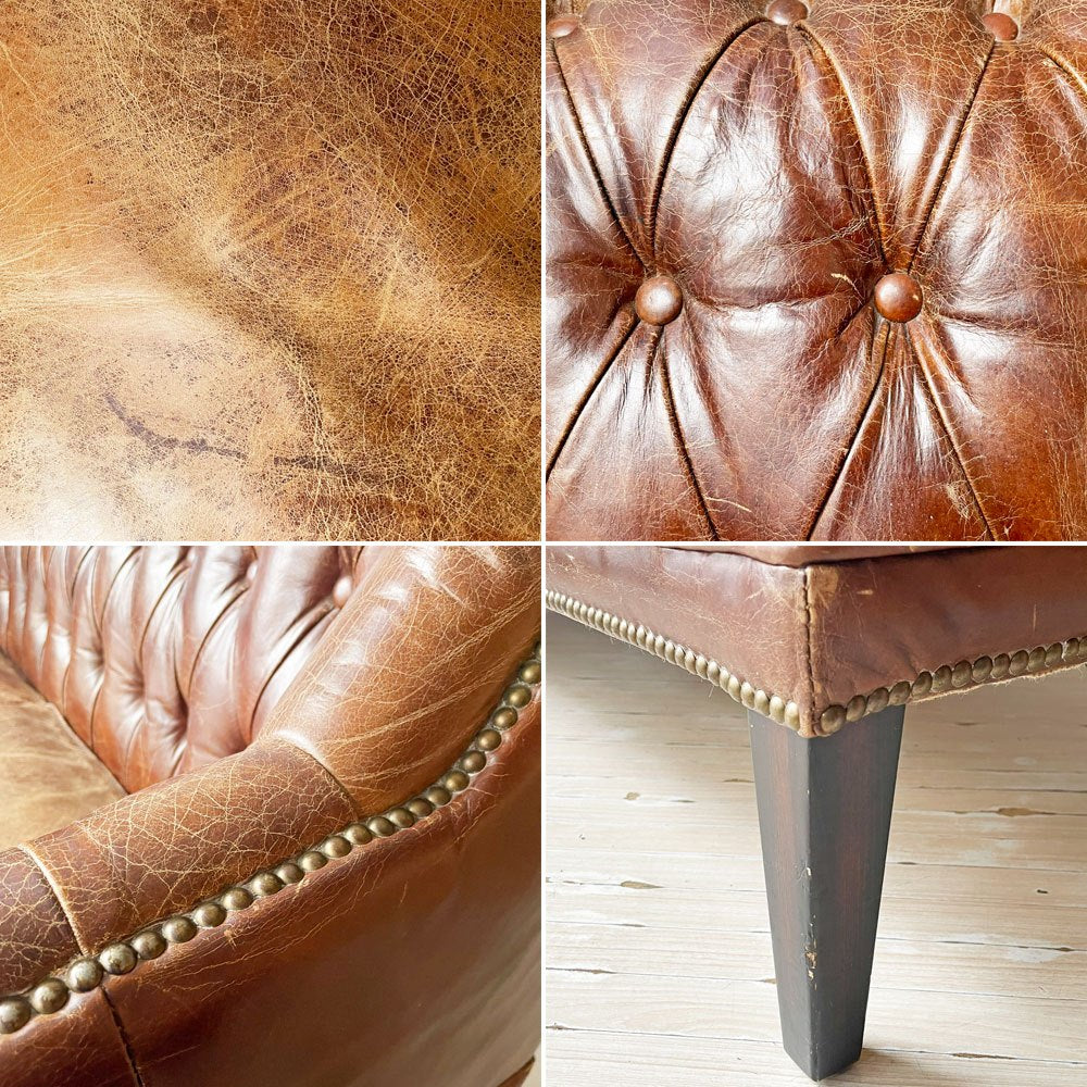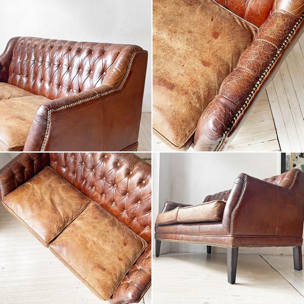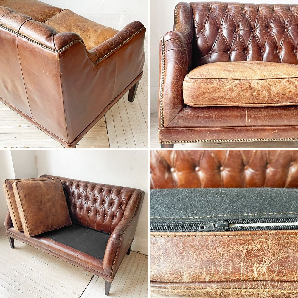 UKビンテージ チェスターフィールド 2シーターソファ ラブソファ 本革 鋲打ち スタッズ 英国家具 ★
