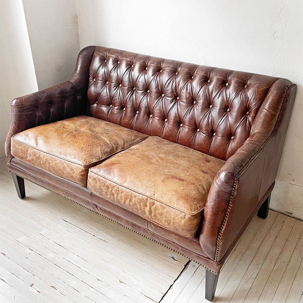 UKビンテージ チェスターフィールド 2シーターソファ ラブソファ 本革 鋲打ち スタッズ 英国家具 ~ 気品のあるビンテージソファ~