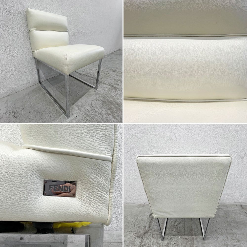 フェンディ・カーサ FENDI CASA エー・ビー・デュアメル AB Duhamel ダイニングチェア 本牛革 オフホワイト 参考価格 約45万~65万の品 B 〓