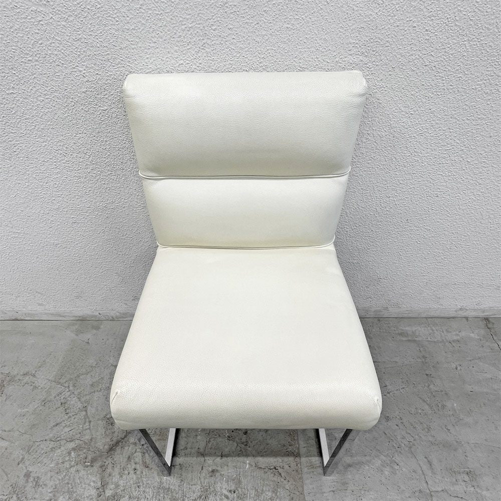 こちらはクッション性のある柔軟なシートを備えたオフホワイトの鞣革張りのダイニングチェア。