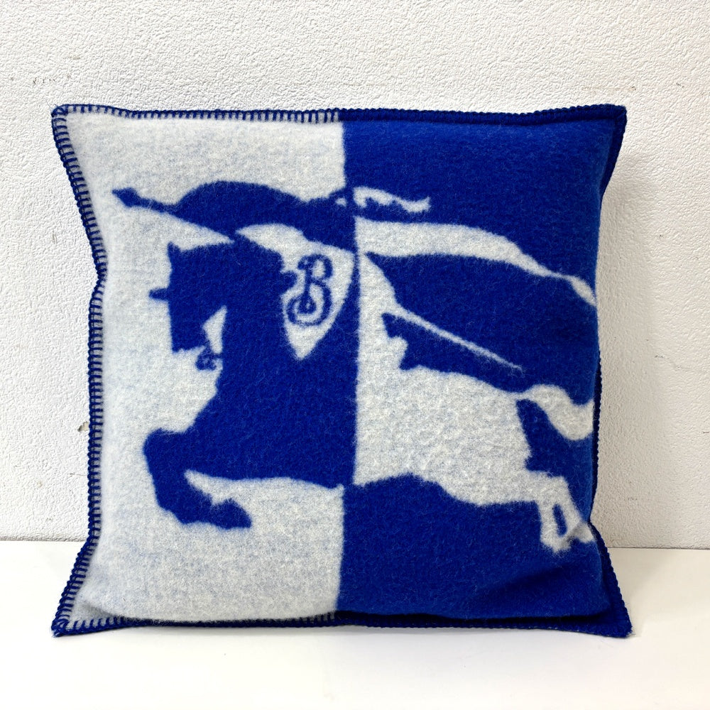 バーバリー BURBERRY EKD ニットウール クッション 馬上の騎士 ジャガード織 51×51cm ブルー フランス ●