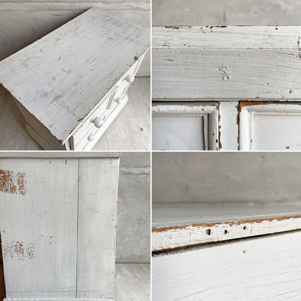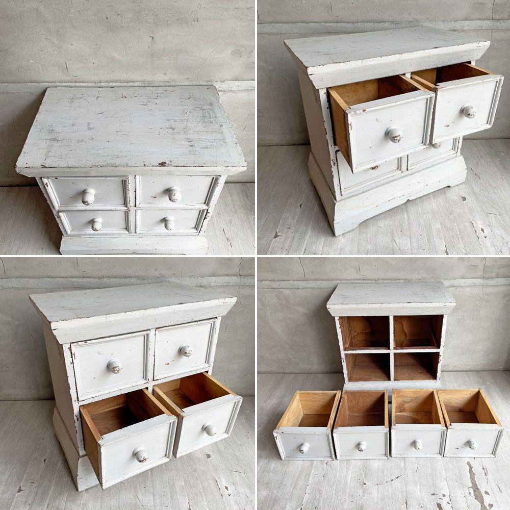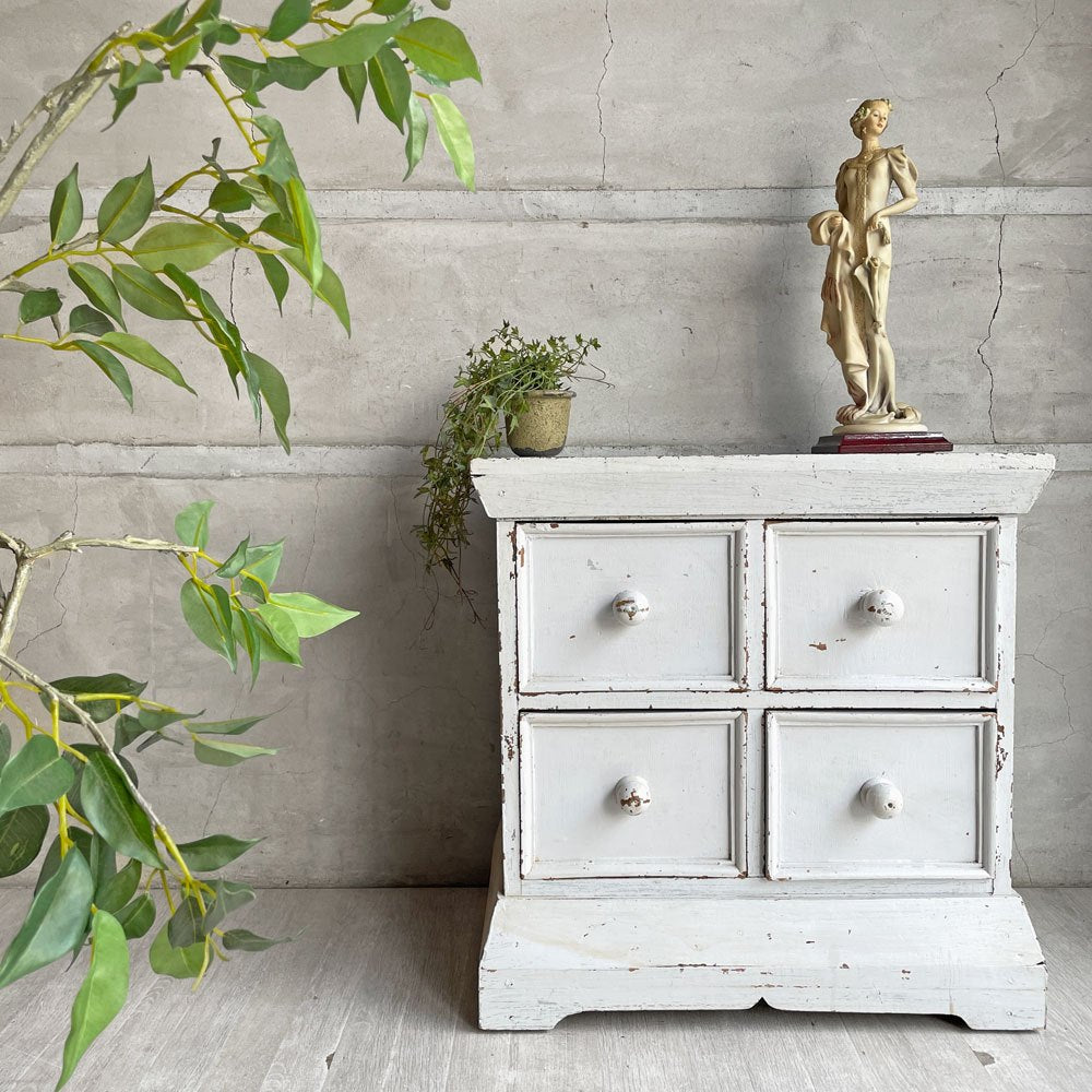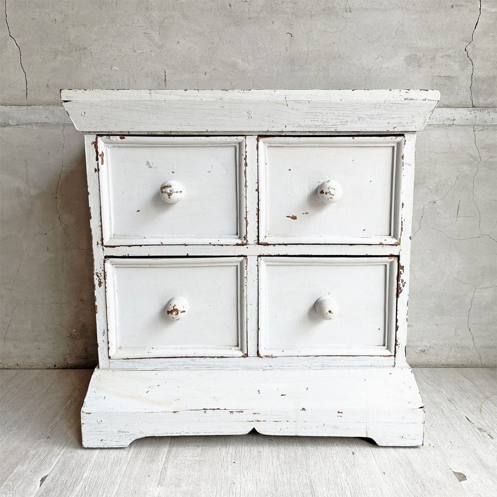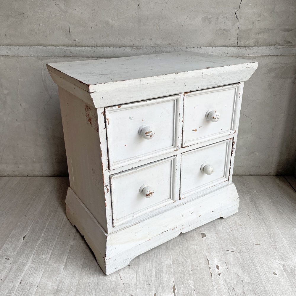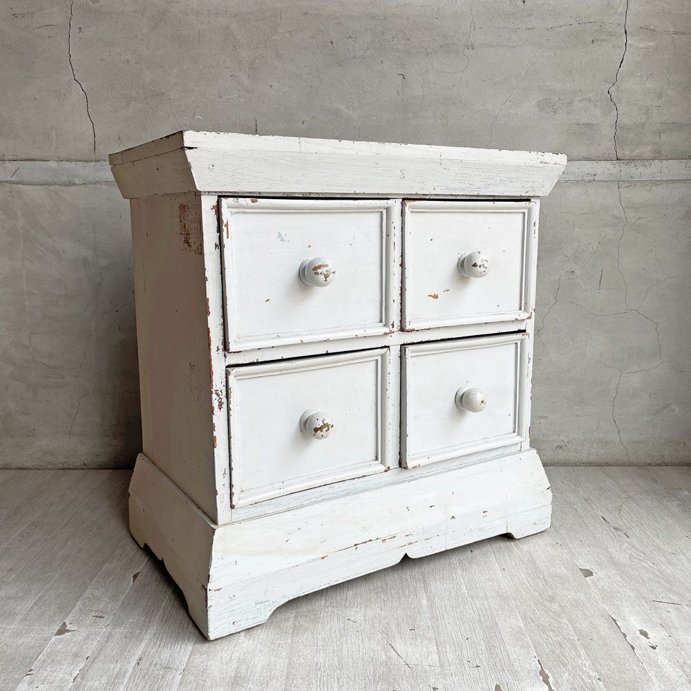 ビンテージ Vintage シャビーシック 4ドロワーズ ミニチェスト ホワイトペイント 木製 無垢材 ブロカント ラスティック 店舗什器 ♪
