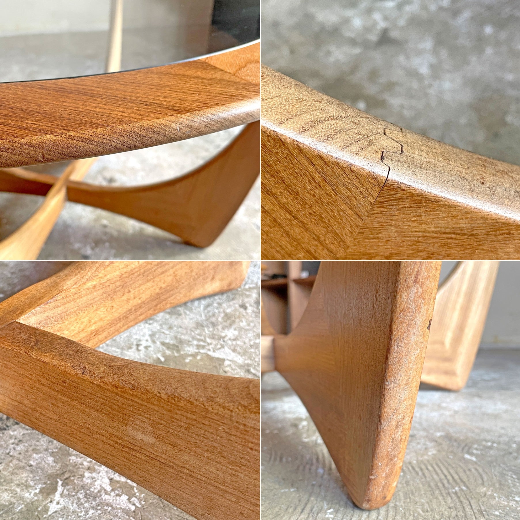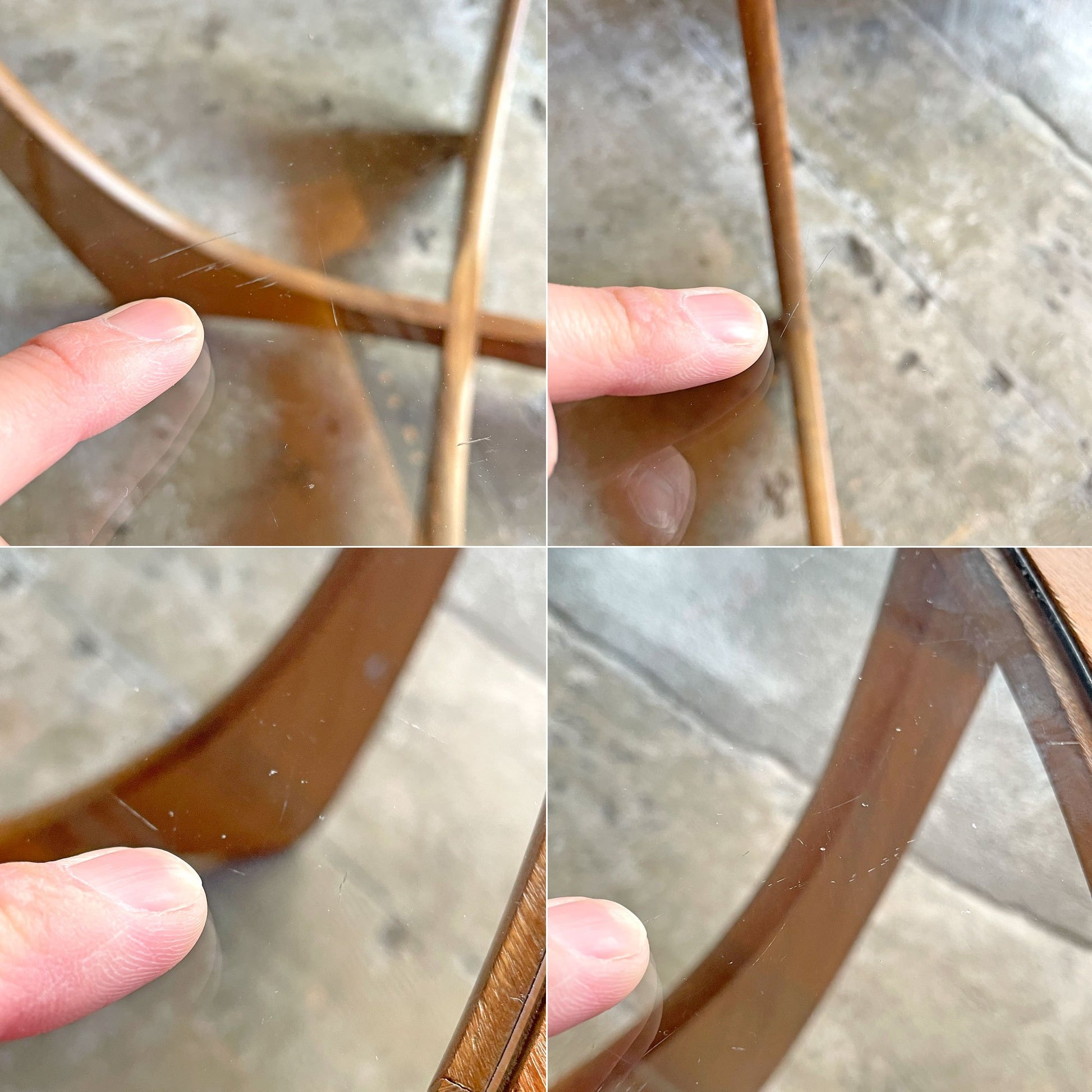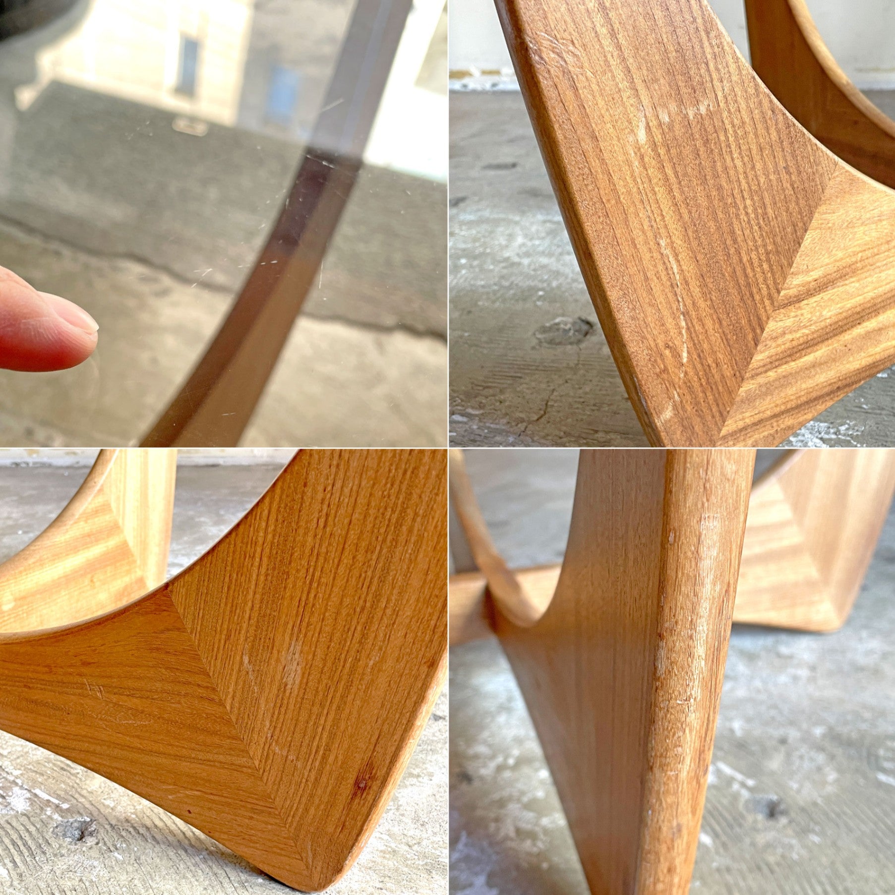 使用に伴い、フレームには擦れや傷、打痕、焼け、染みがございます。また、天板のガラスには、傷や僅かなくすみが見受けられますが、その他目立つ様な大きなダメージは無く、これからも安心して実用頂けるコンディションを保っております。