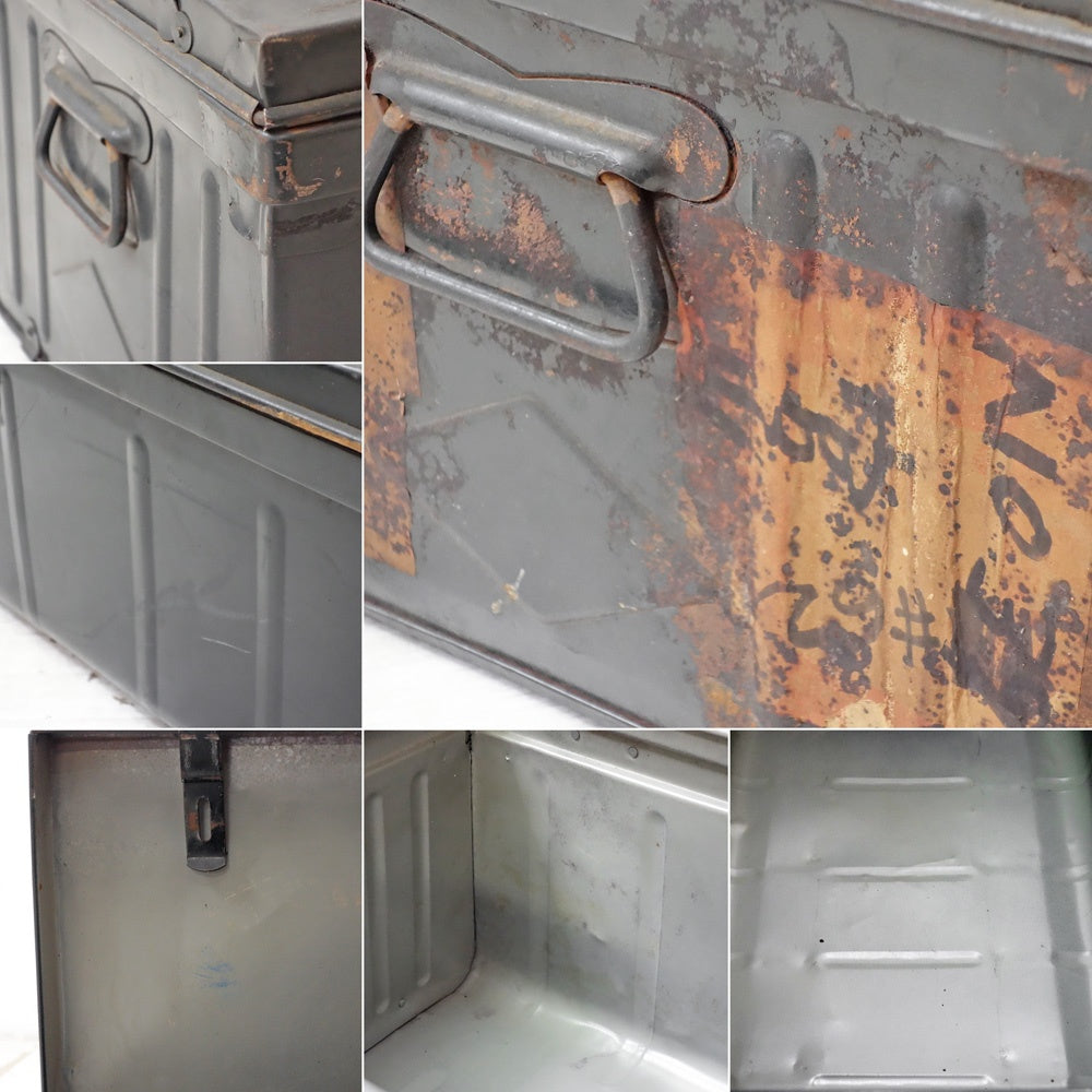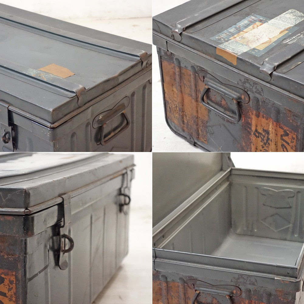 ビンテージ Vintage スチール トランクケース 収納ボックス インダストリアルデザイン 店舗什器 ●