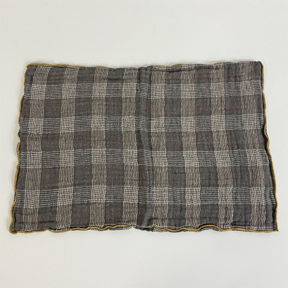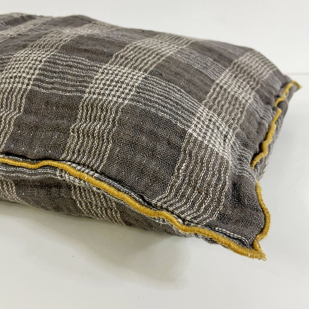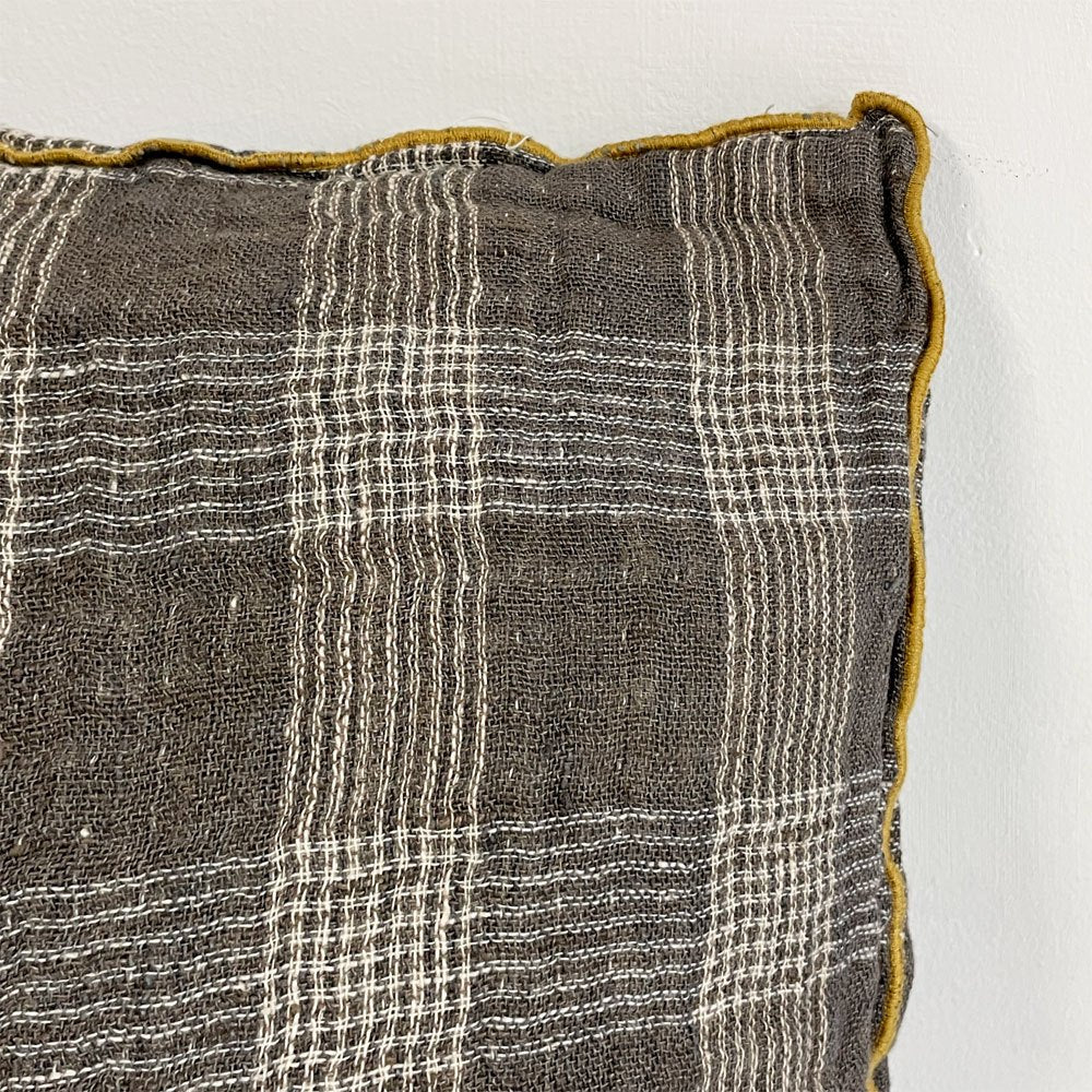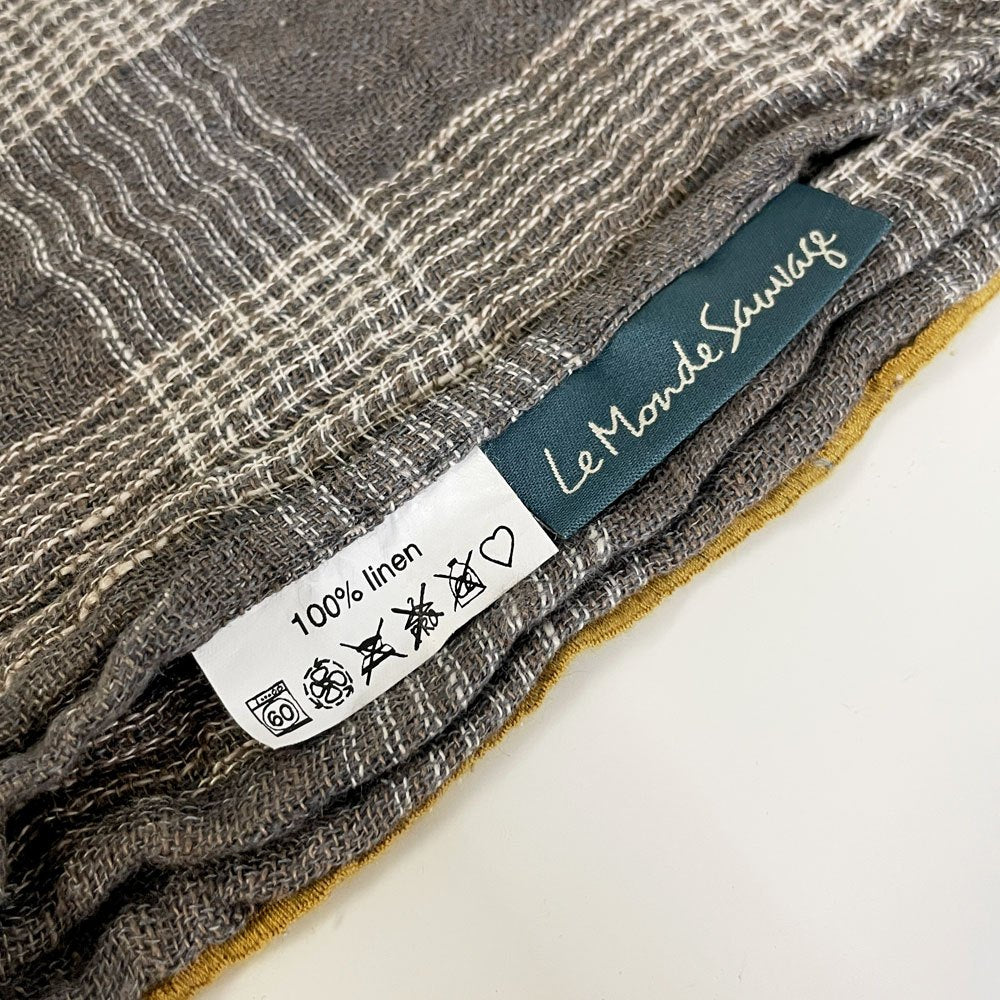 ルモンドソヴァージュ Le Monde sauvage ピローケース クッションカバー リネン ブラウン チェック ●