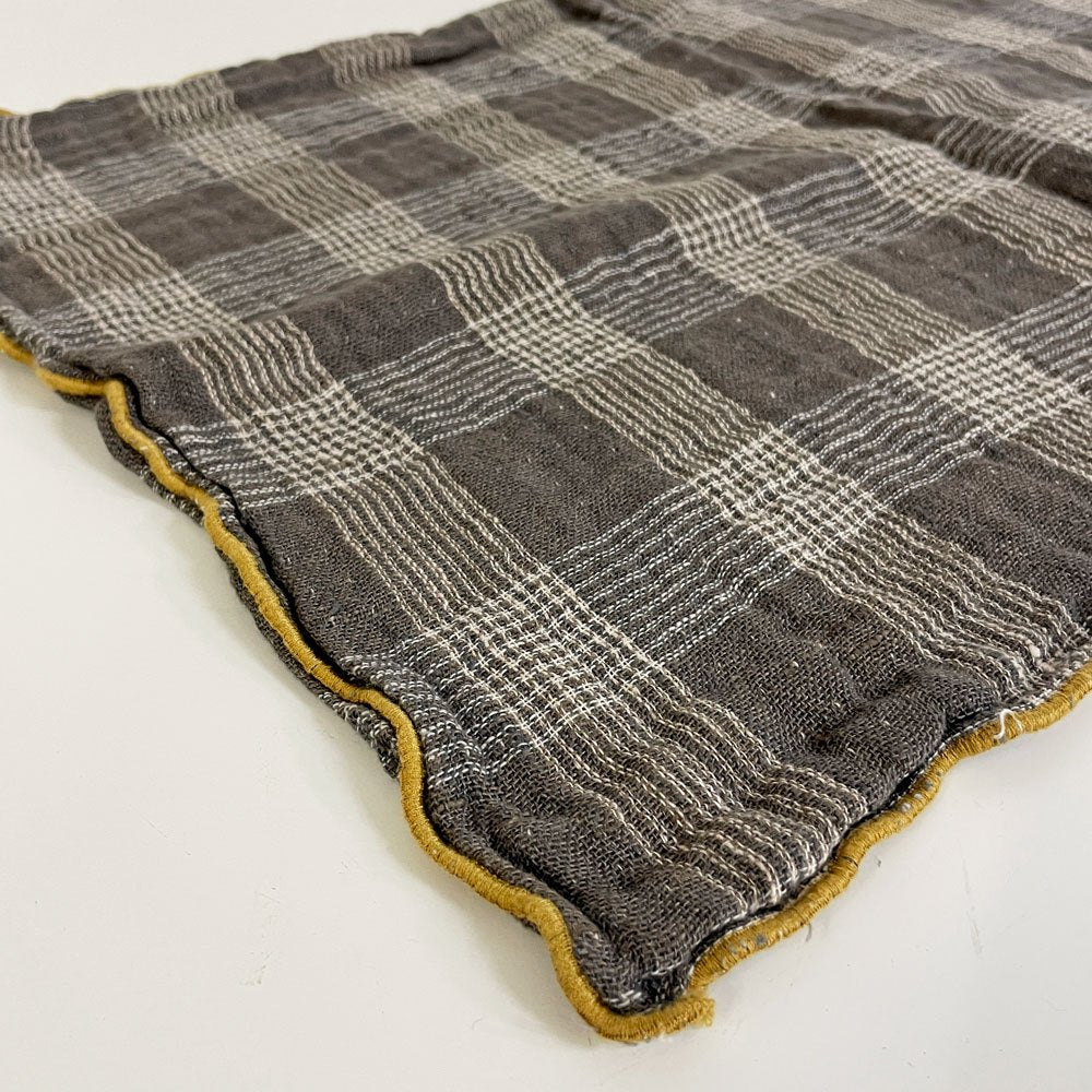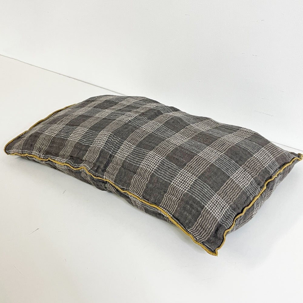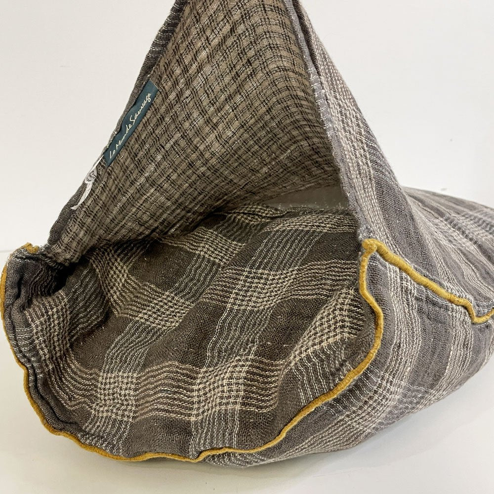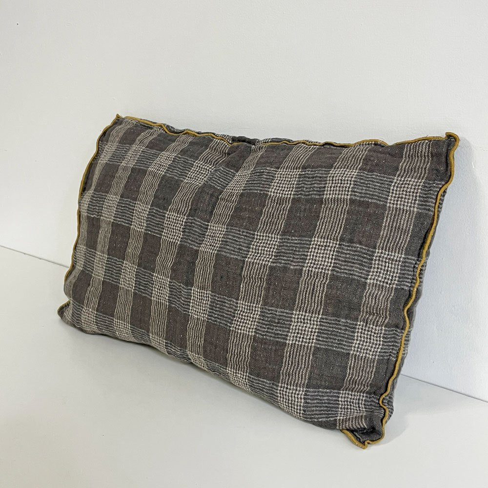 ルモンドソヴァージュ Le Monde sauvage ピローケース クッションカバー リネン ブラウン チェック ●