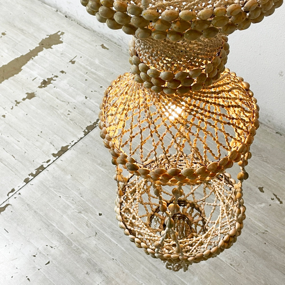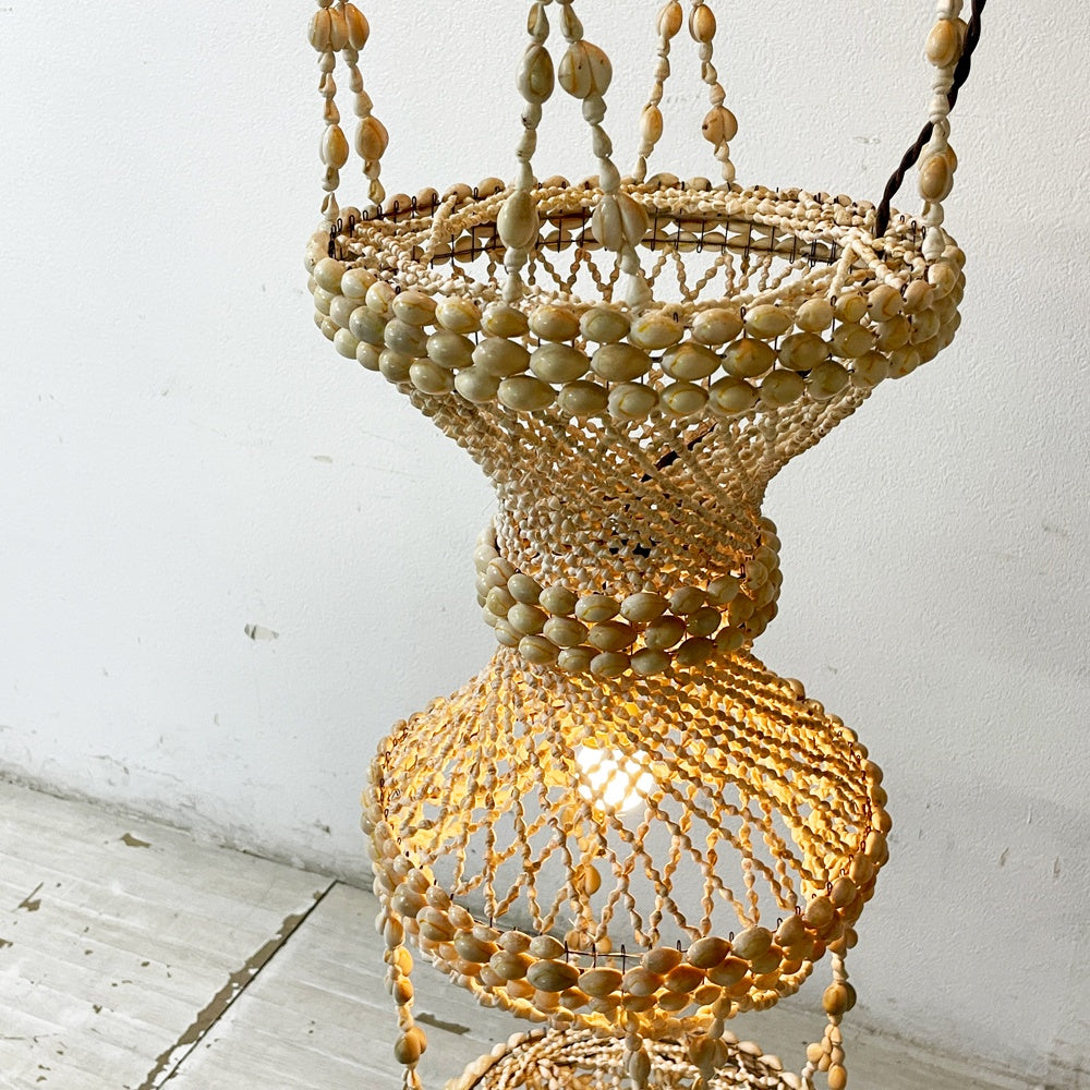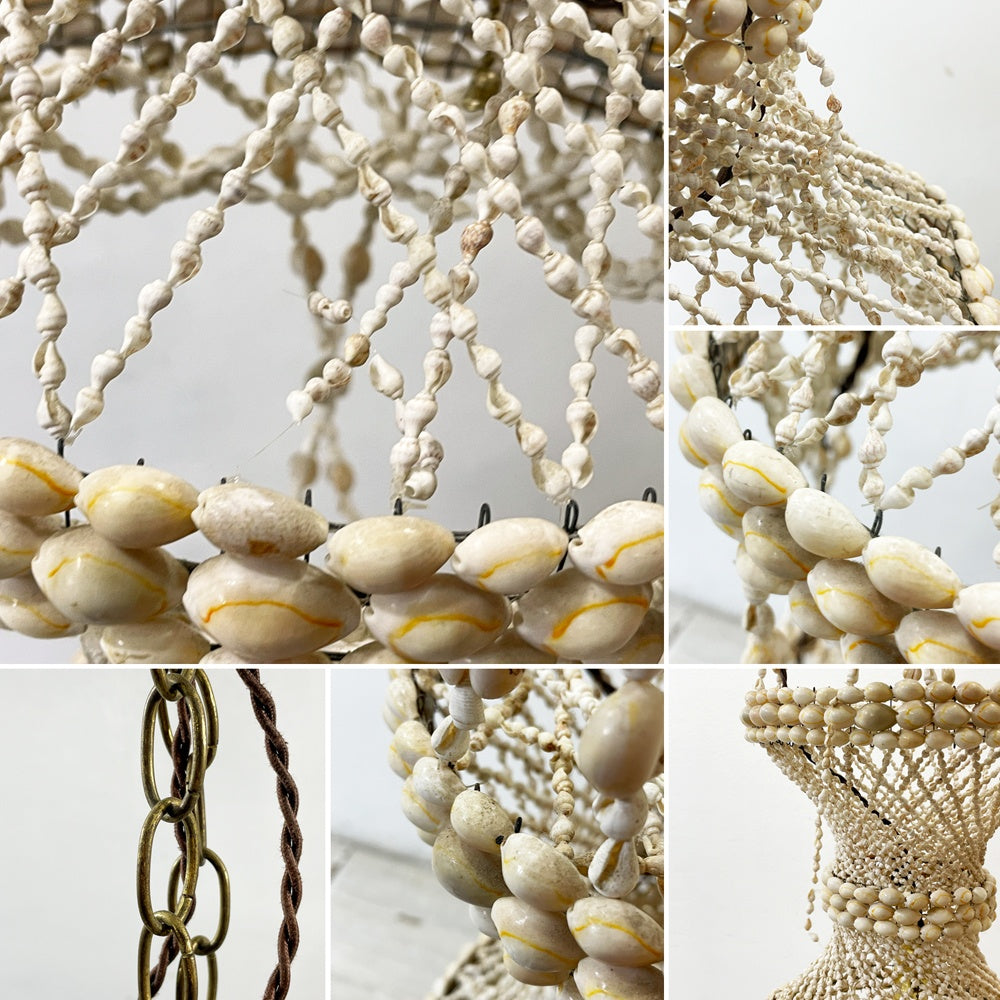 細かな貝が繋ぎ合わせて作られたシャンデリアタイプのビンテージペンダントライトが入荷致しました。