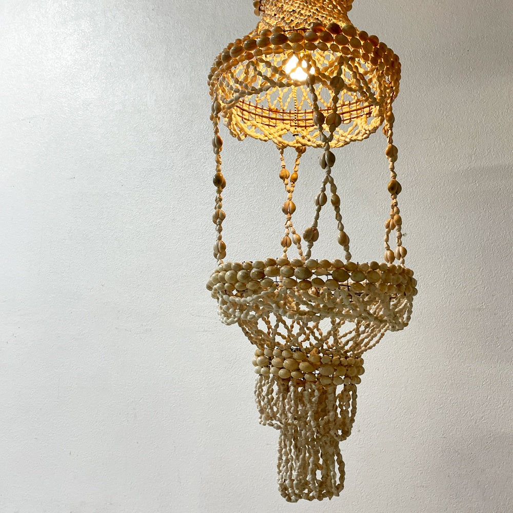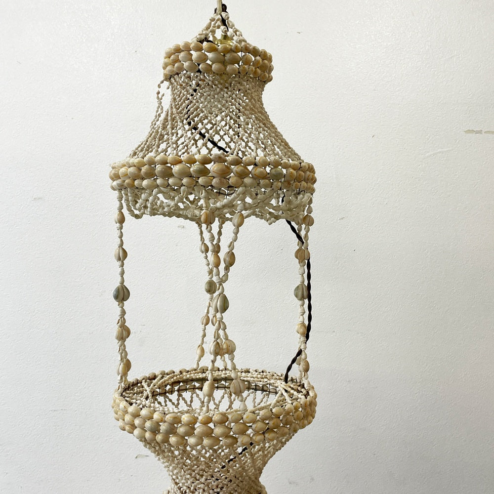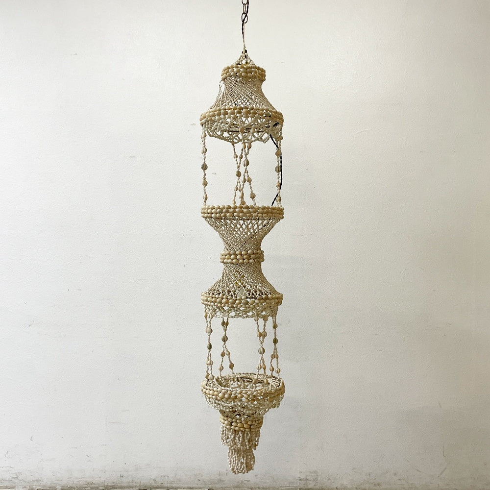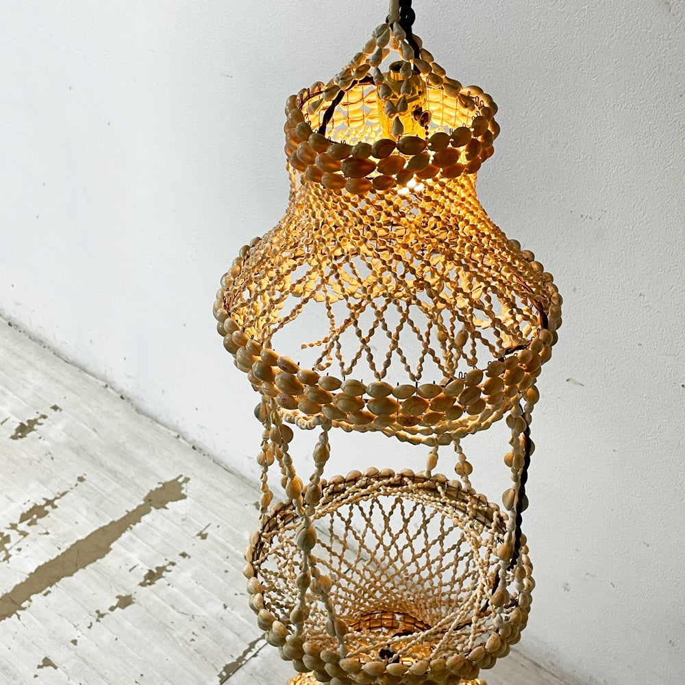 細かな貝が繋ぎ合わせて作られたシャンデリアタイプのビンテージペンダントライトが入荷致しました。