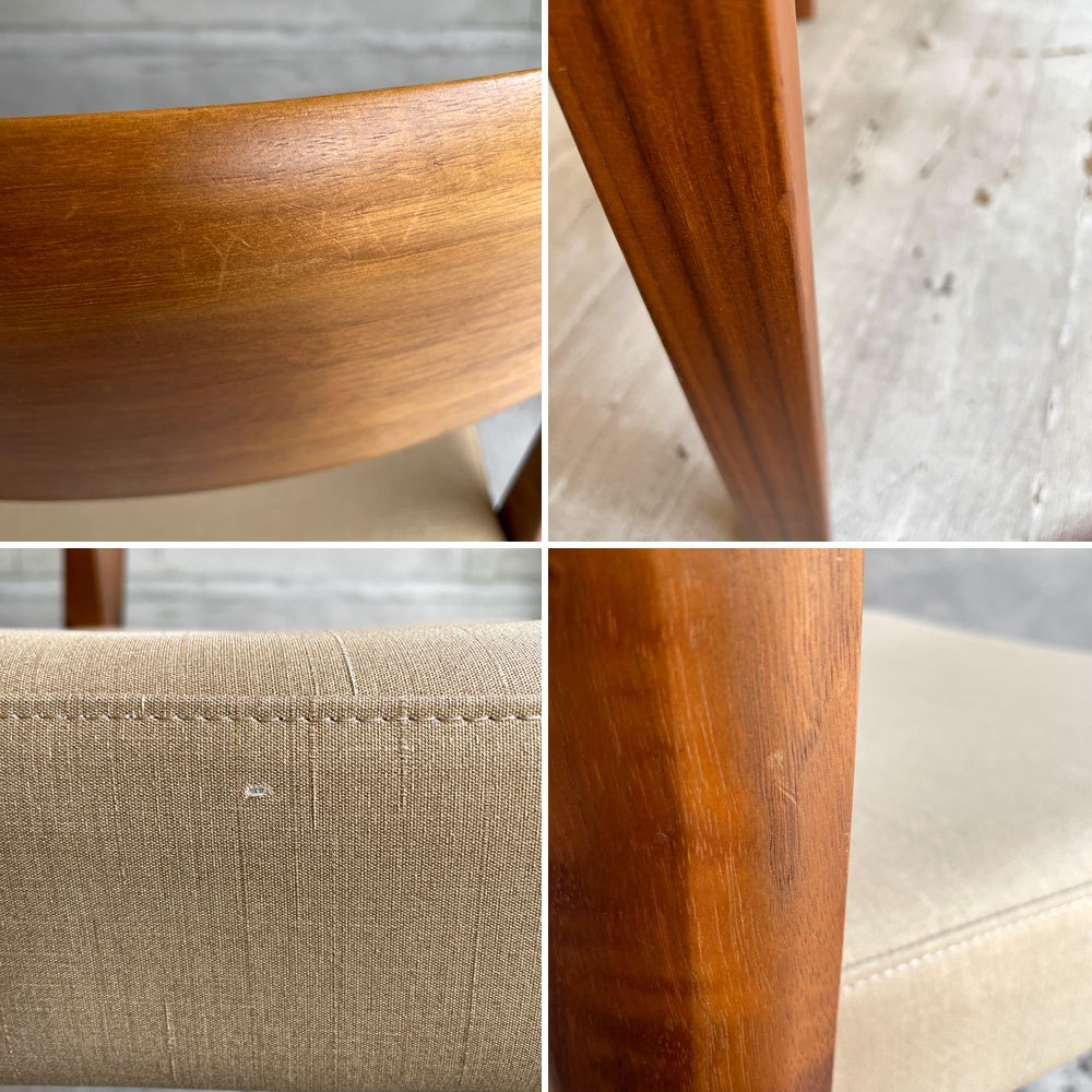 フレームに傷や擦れ、ペイントロス、染みなどがに受けられます。ファブリックに軽微な傷が見られますが、クッションのへたりなどもなく使用に問題となるダメージもございません。USED品として概ね良好なコンディションを保っています。