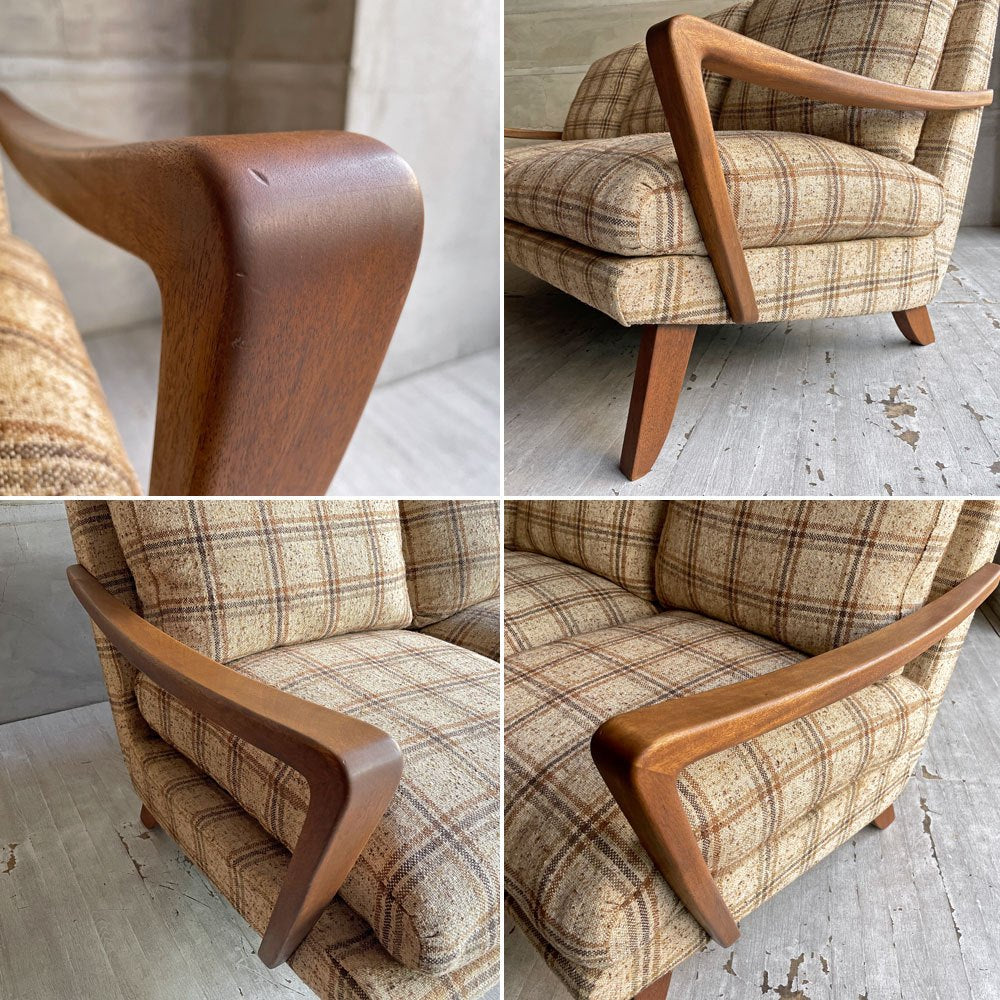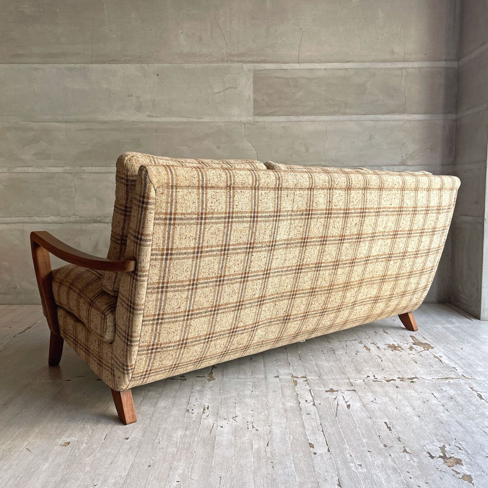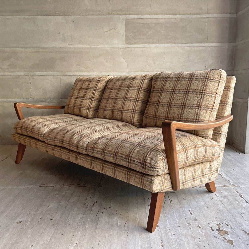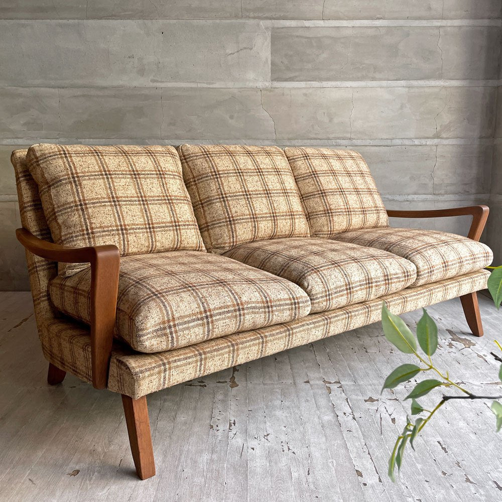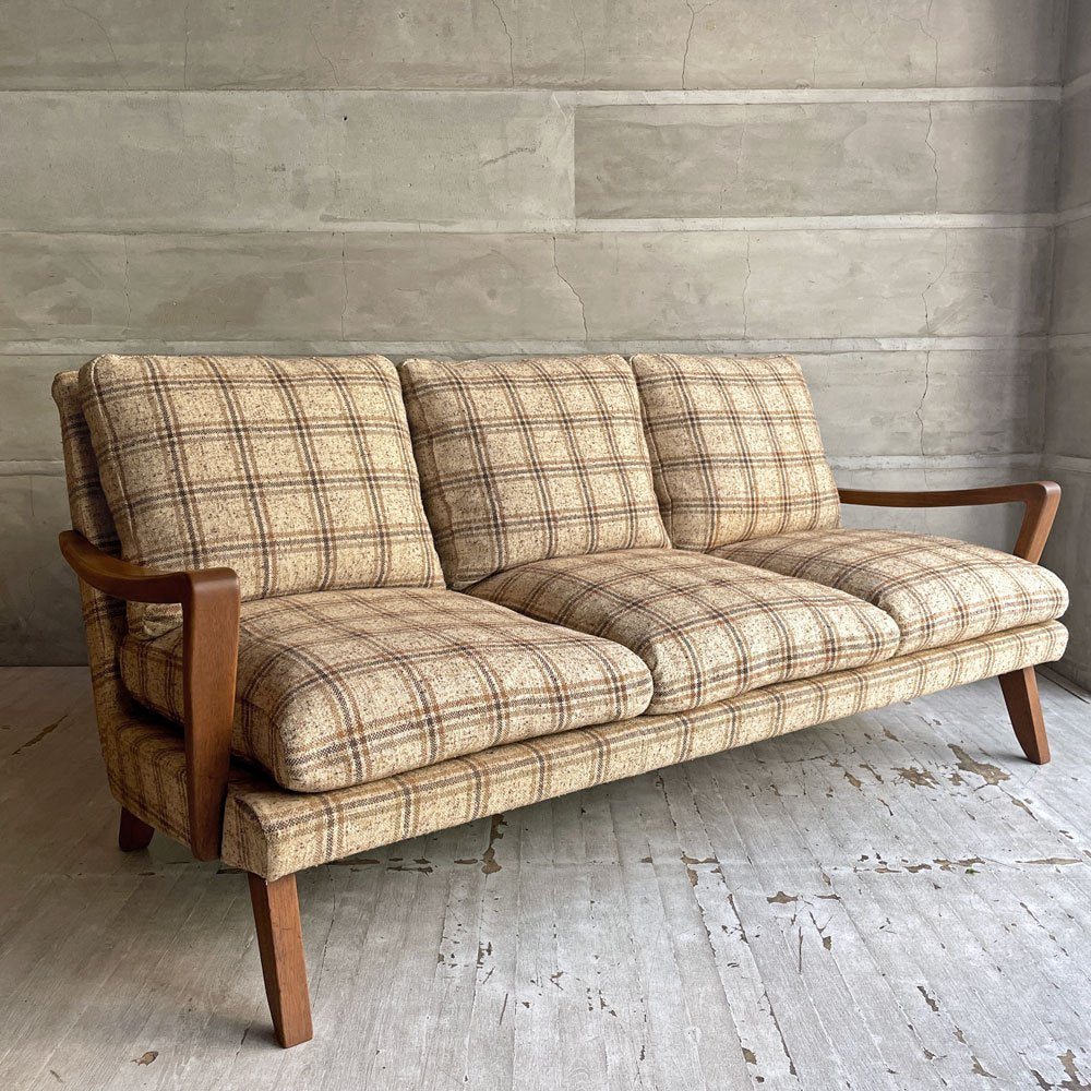 トラックファニチャー TRUCK FURNITURE 3pソファ 3人掛け ウォールナット材 フェザークッション チェック柄 レトロ ビンテージテイスト 廃番希少 ♪