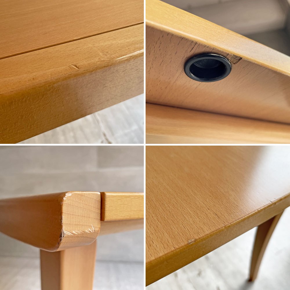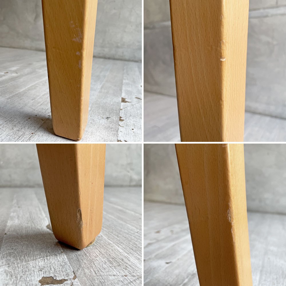 使用に伴う傷や擦れ、打痕やペイントロス、色ムラや軽微な汚れ、天板裏面に軽微な突板の剥がれなどがございますが、大きく目立つ様なダメージなども無く、機能やご使用に問題のある箇所などもございません。USED品として概ね良好なコンディションを保っております。