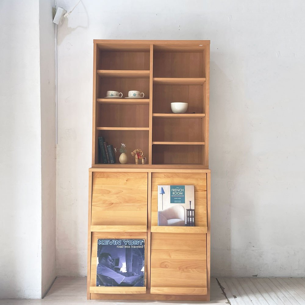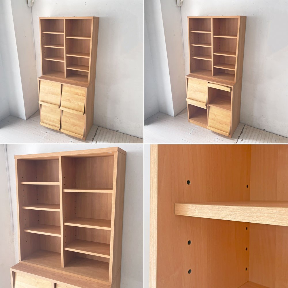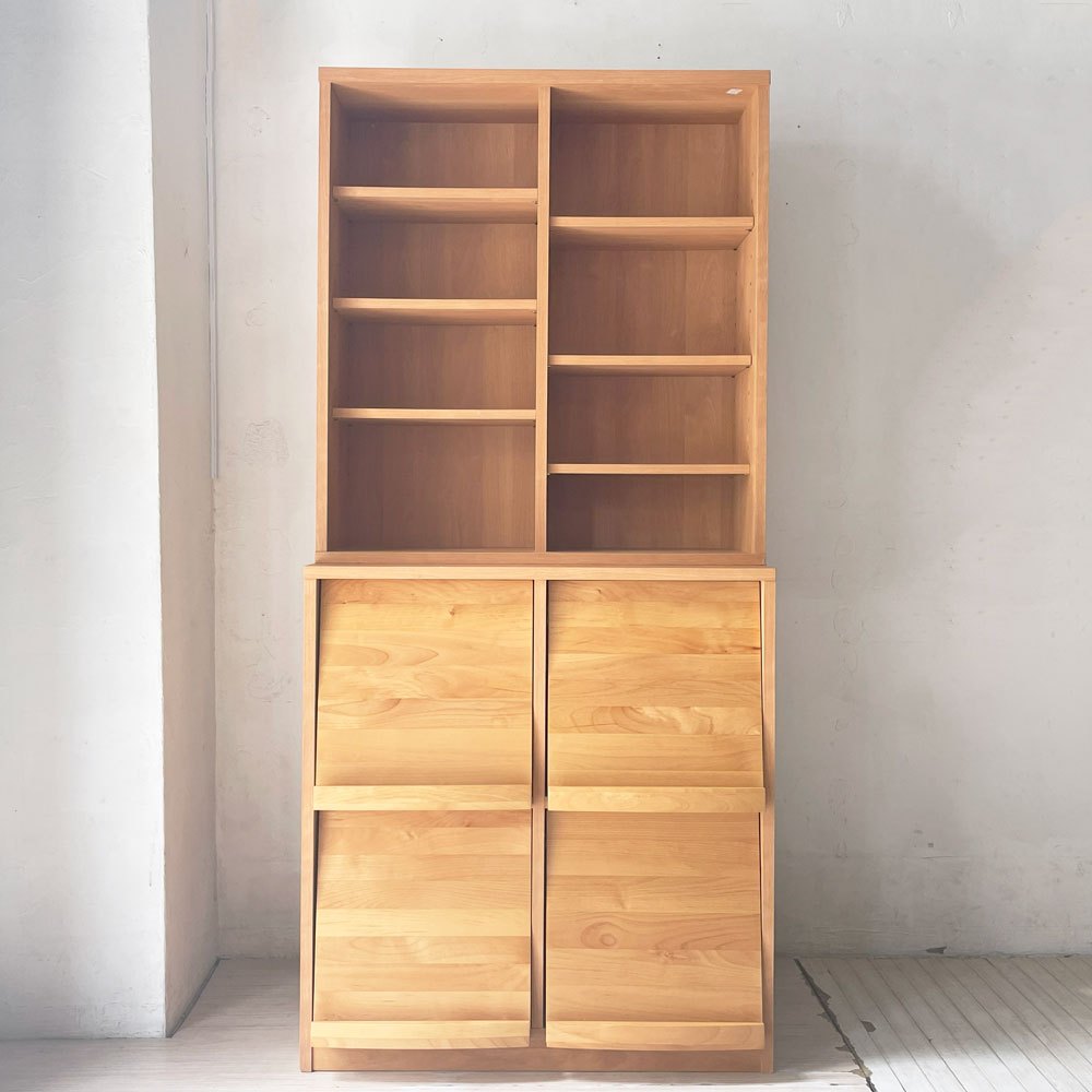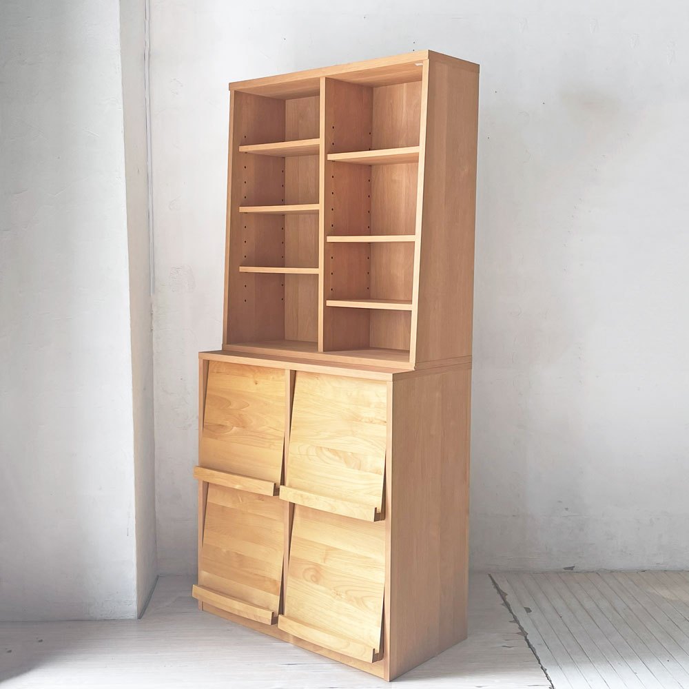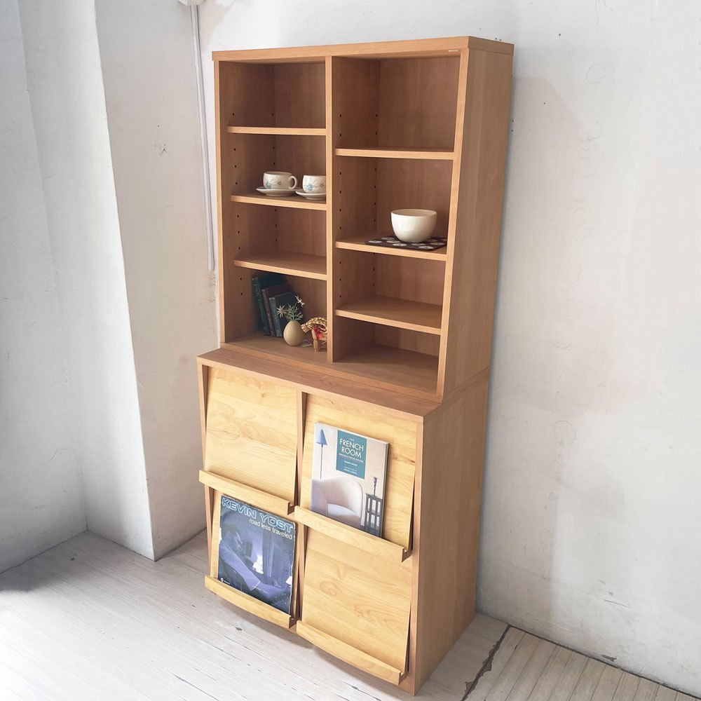 ベルメゾン Belle Maison あたたかみのあるアルダー材のフラップ本棚 上置き付き キャビネット 飾り棚 定価¥84,900- ★