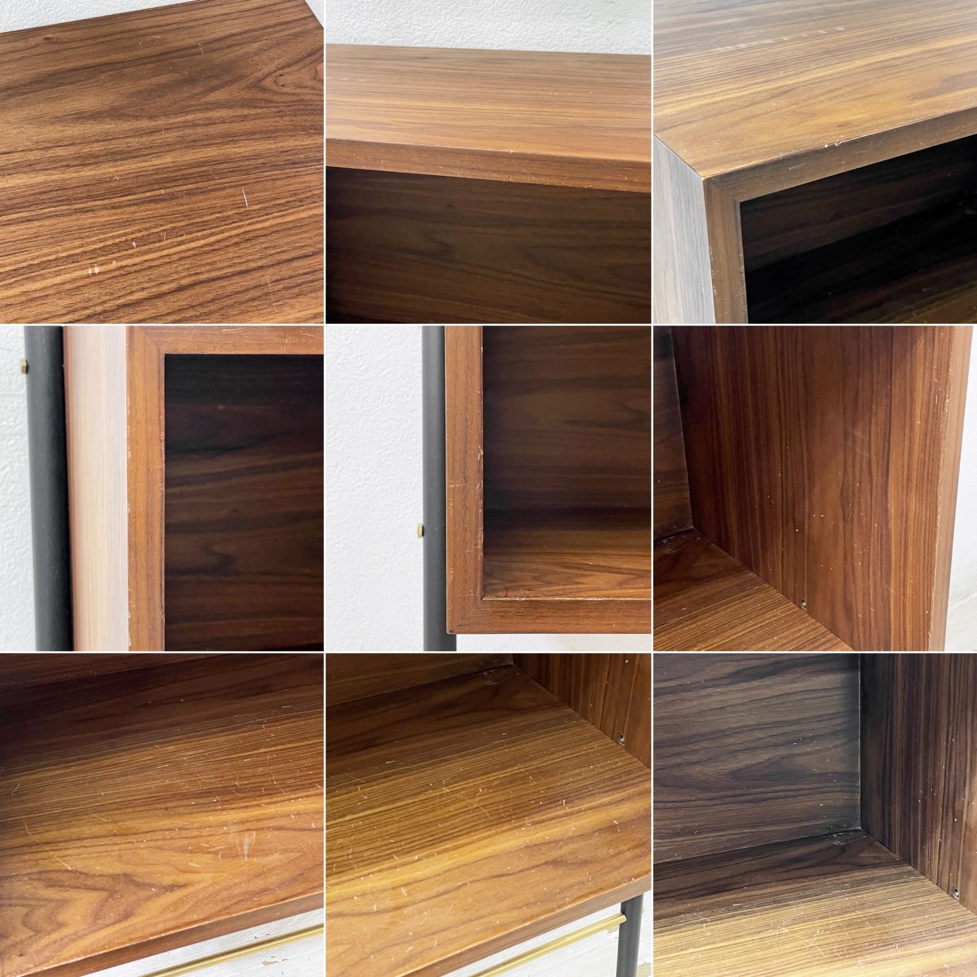 使用に伴い、棚板やボックス内部に線傷やペイントロス、縁に打痕が数箇所、フレームには微細なくすみや擦れが見受けられます。
