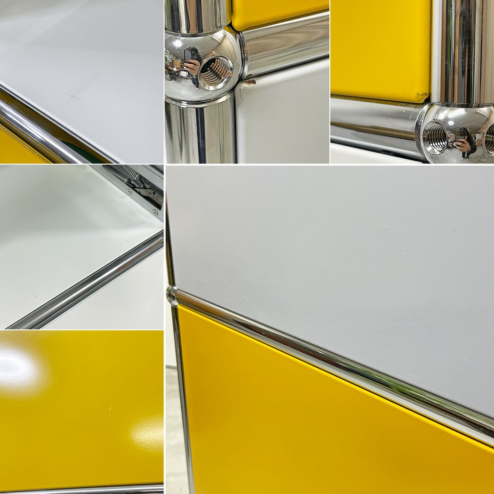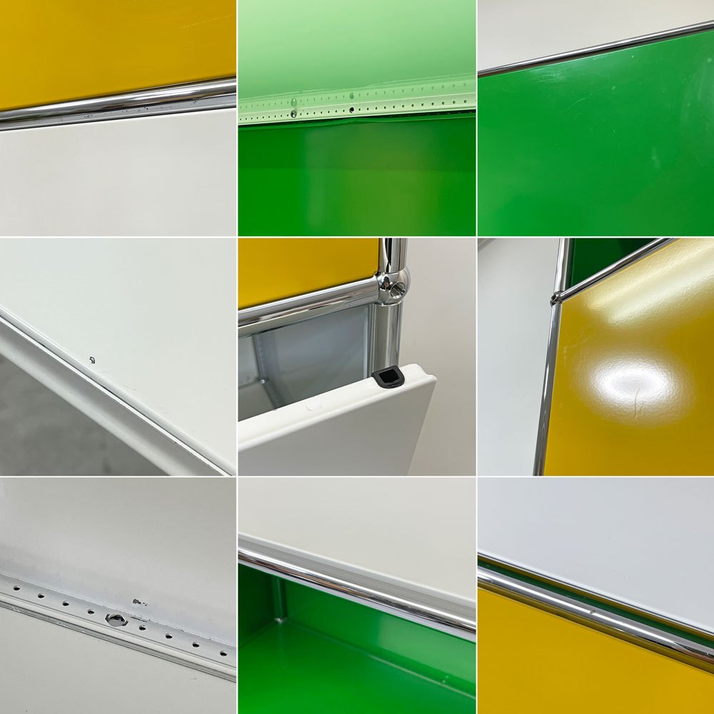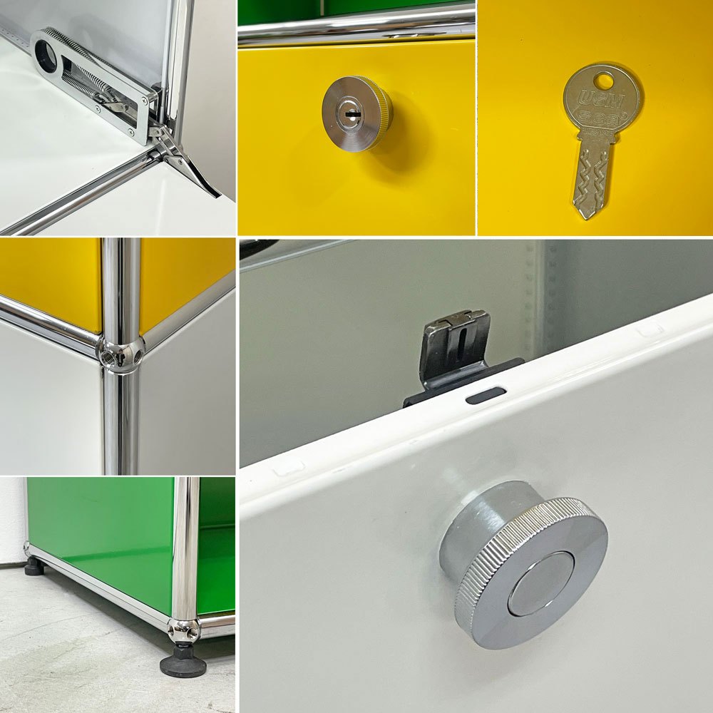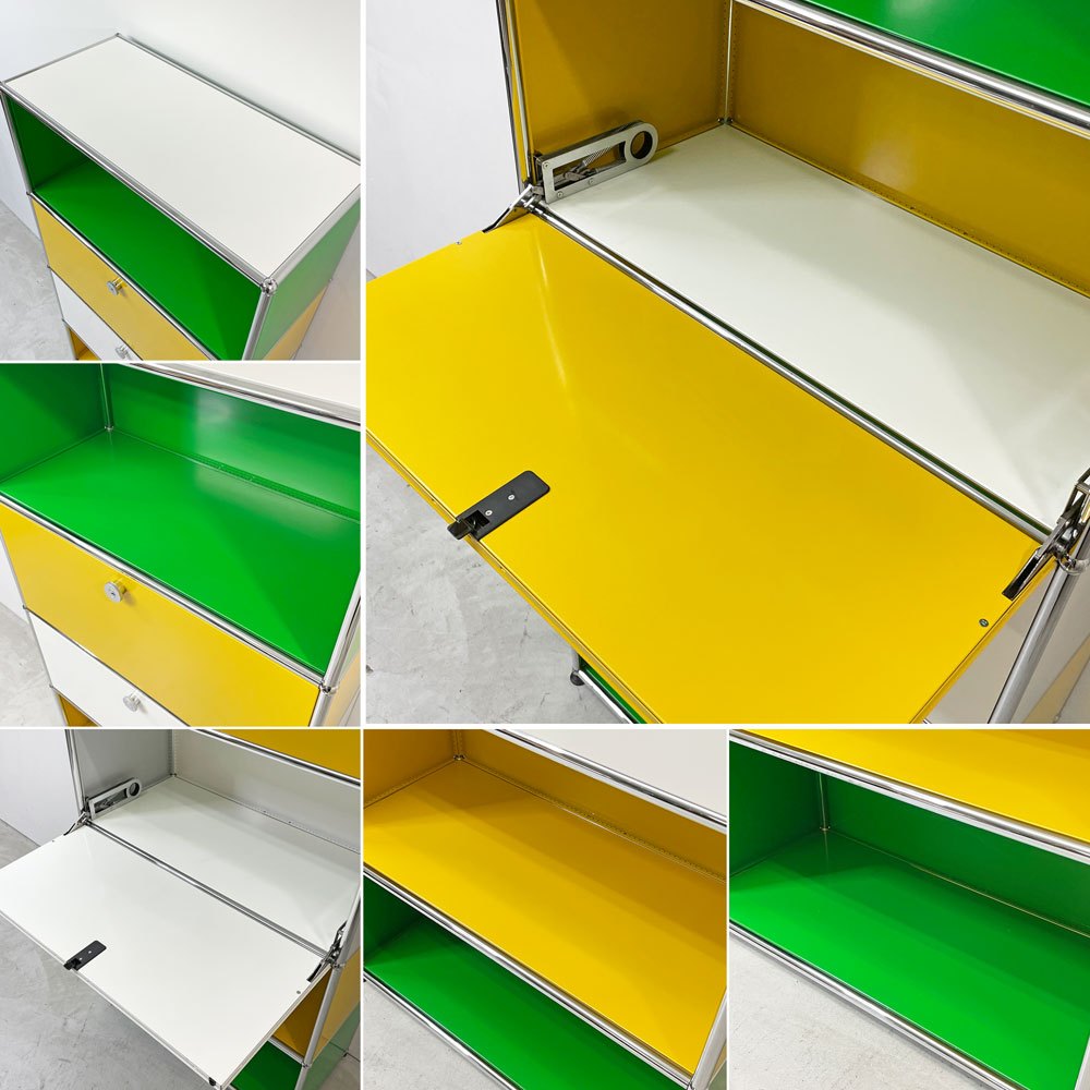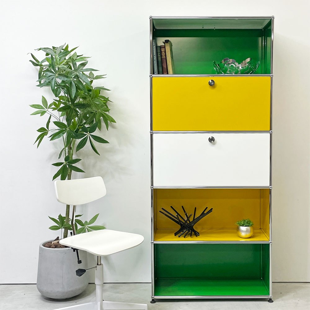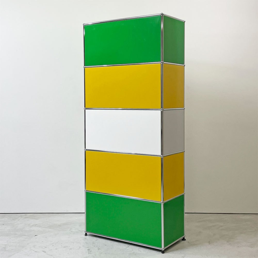 USMハラー USM Haller モジュラーファニチャー キャビネット シェルフ 1列5段 ドロップダウンドア×2 USMグリーン ゴールデンイエロー ピュアホワイト スイス 鍵付き ●