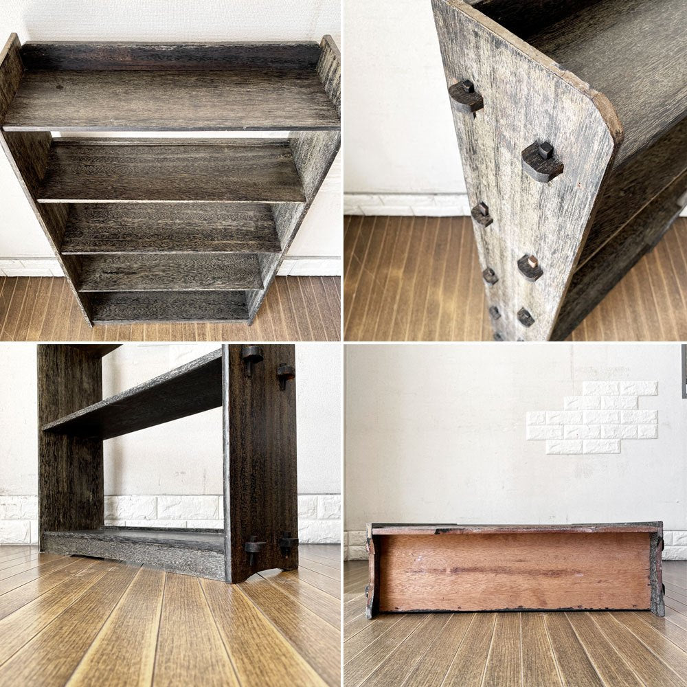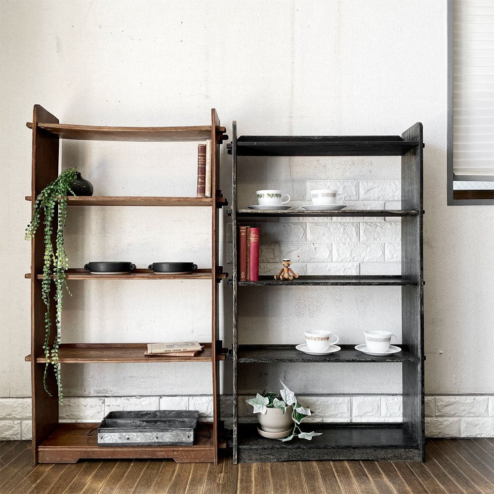ジャパンビンテージ Japan Vintage 古い木味の本棚 5段 ブックシェルフ オープンシェルフ 飾り棚 楔留め W66cm 昭和レトロ 古家具 ~ホッとする古家具の魅力~