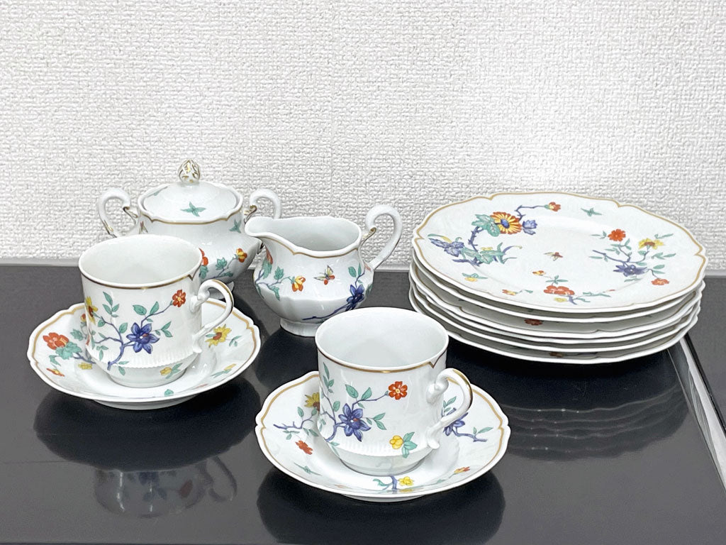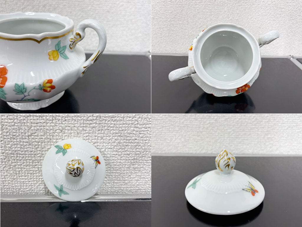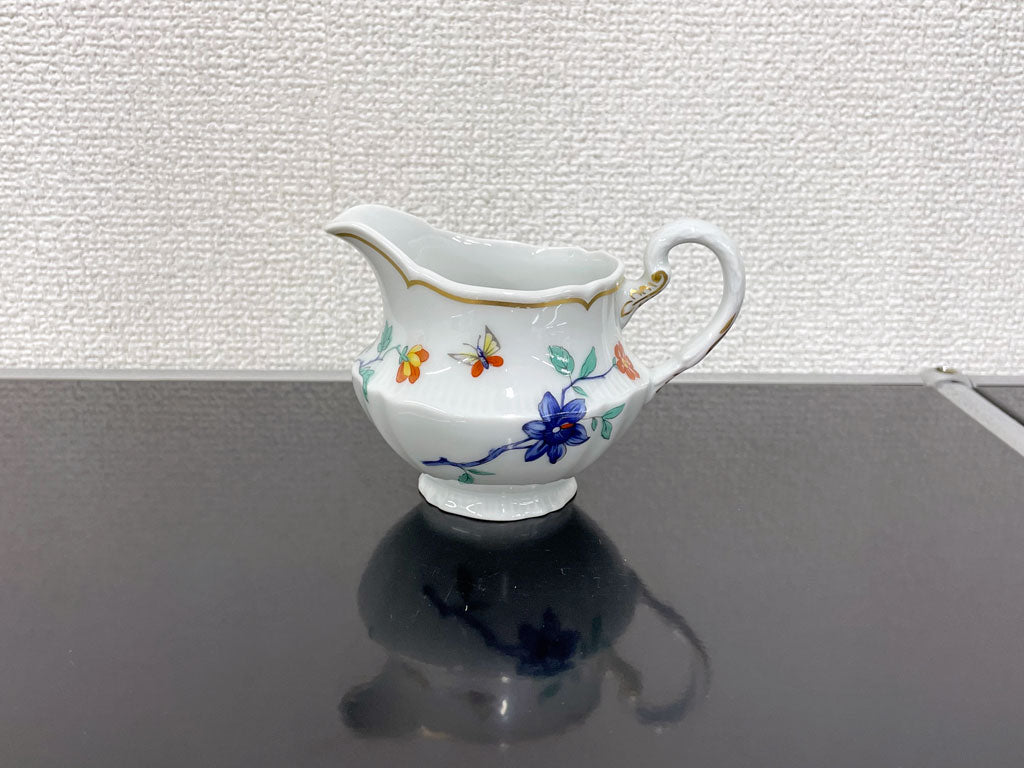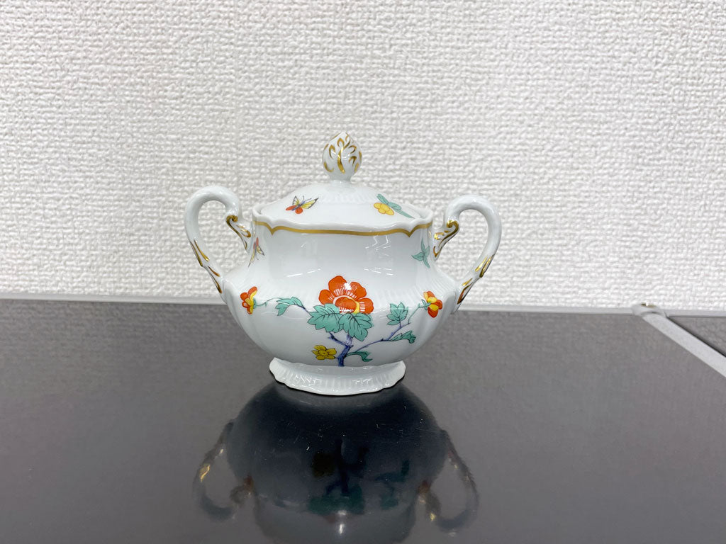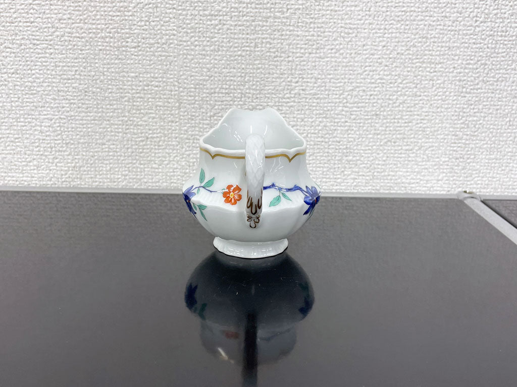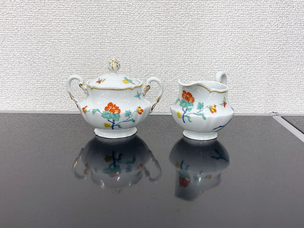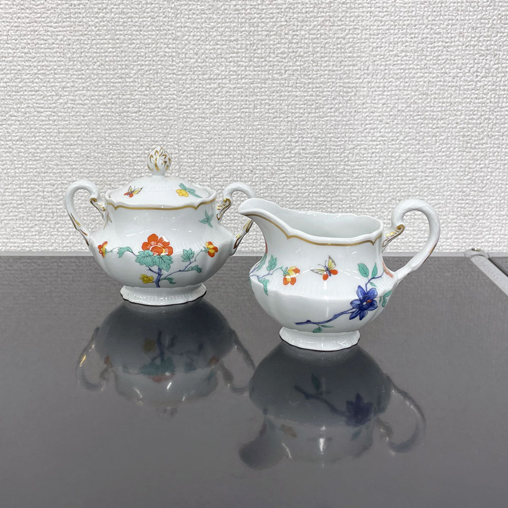 鮮やかなお花をモチーフにした絵付けと優雅なシェイプが魅力の高級感のあるクリーマー&シュガーポットのセットです。