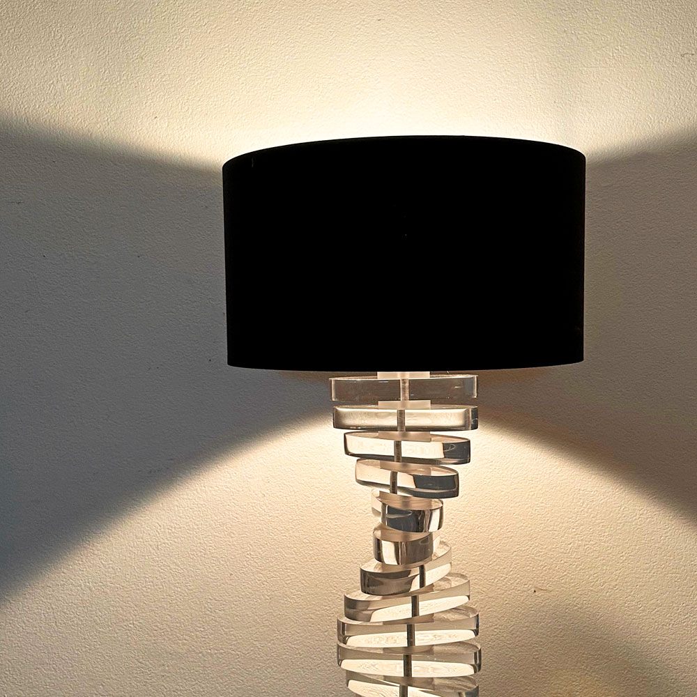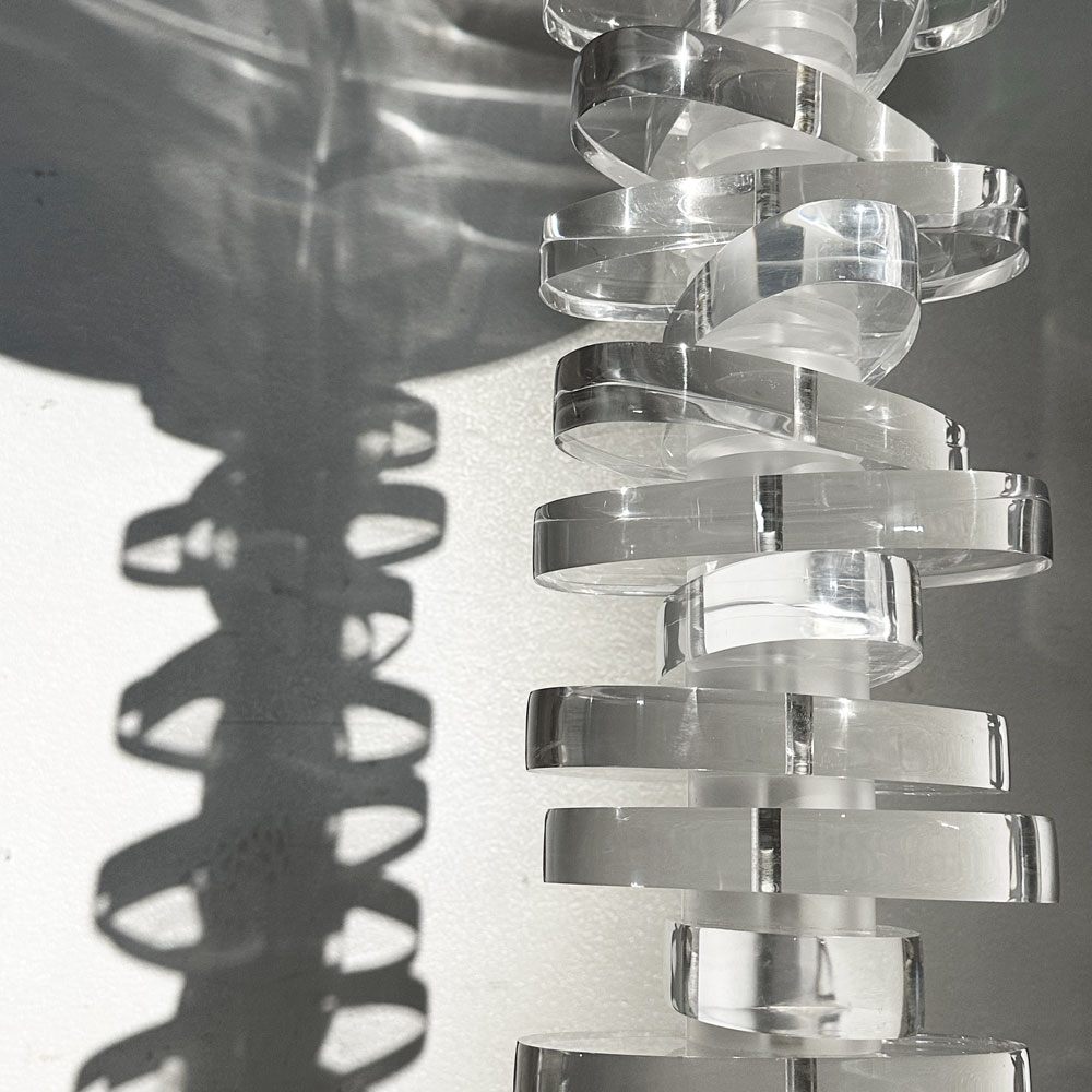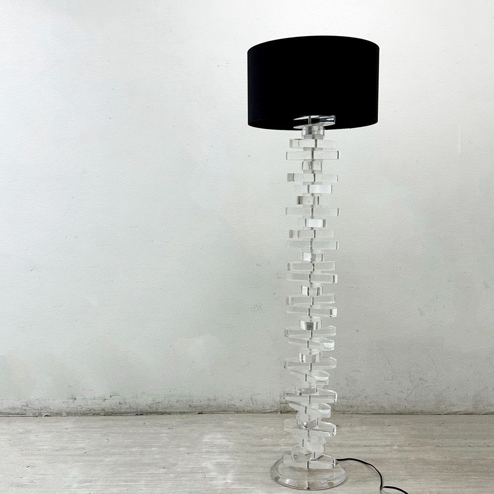 ビンテージ Vintage アクリル製 スパイラル フロアランプ スタンドライト 布シェード モダンデザイン ●