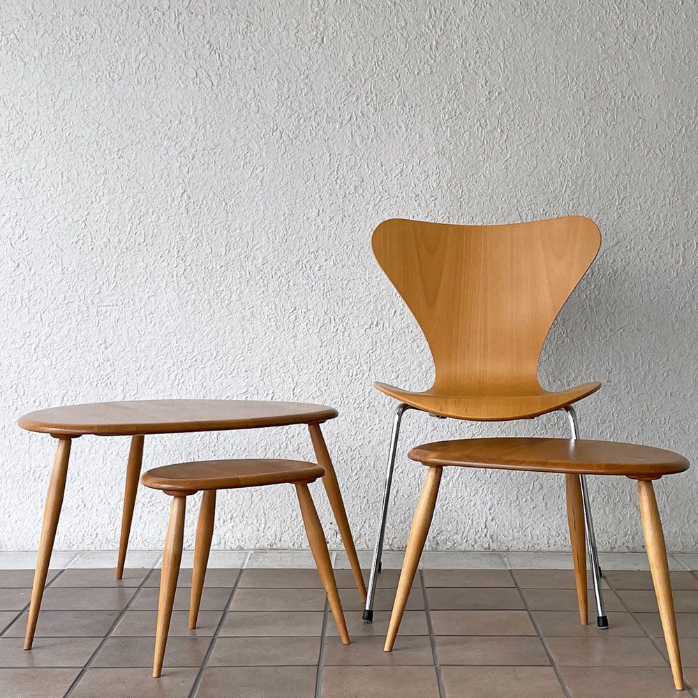 アーコール ercol ペブル PEBBLE 354 ネストテーブル nest of tables サイドテーブル ブルーラベル UKビンテージ ◇