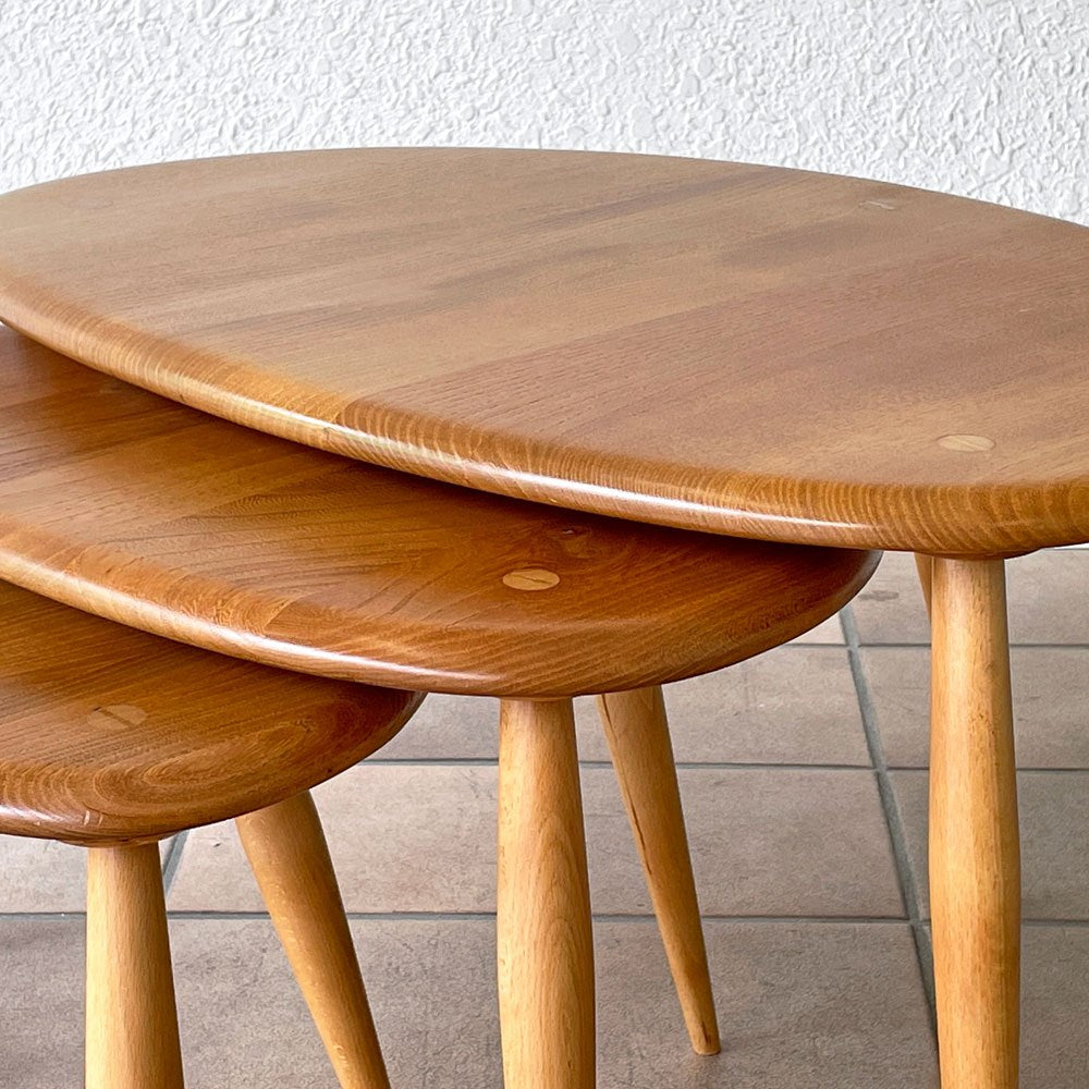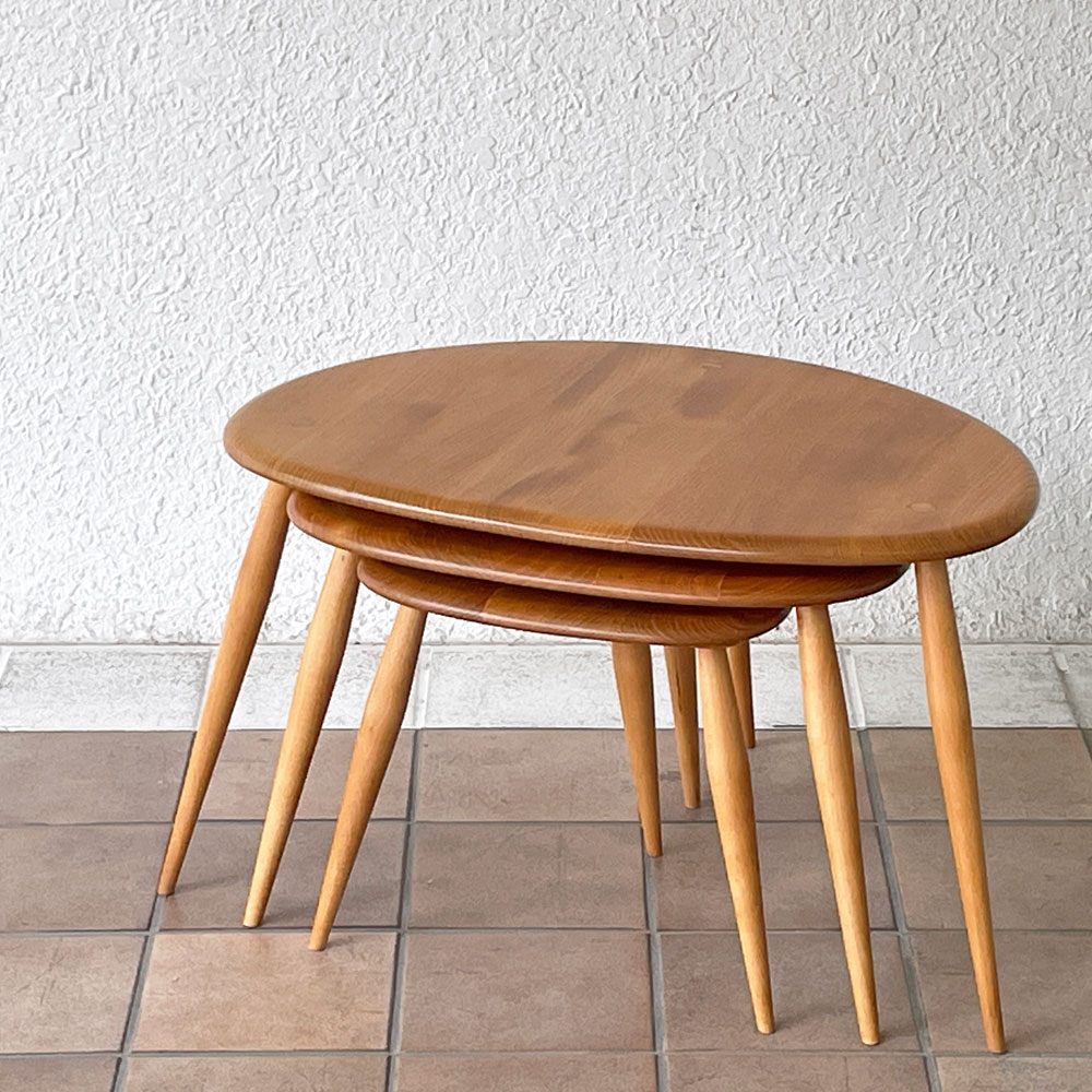 アーコール ercol ペブル PEBBLE 354 ネストテーブル nest of tables サイドテーブル ブルーラベル UKビンテージ ~3つの小石~