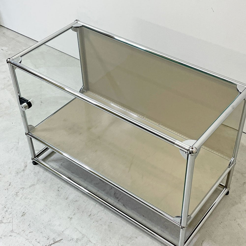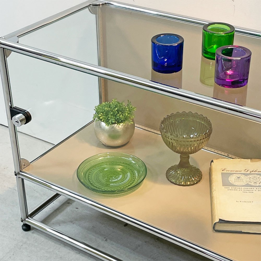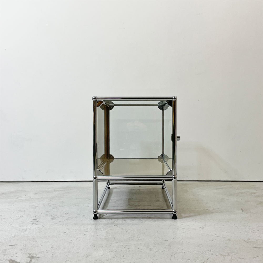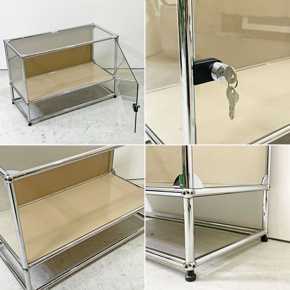 USMハラー USM Haller モジュラーファニチャー ハラーシステム ガラスキャビネット 1列2段 クリアガラス USMベージュ スイス 鍵付き ●