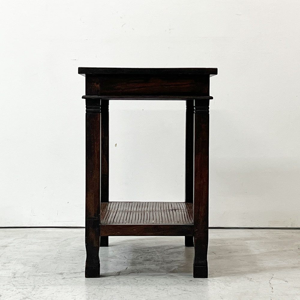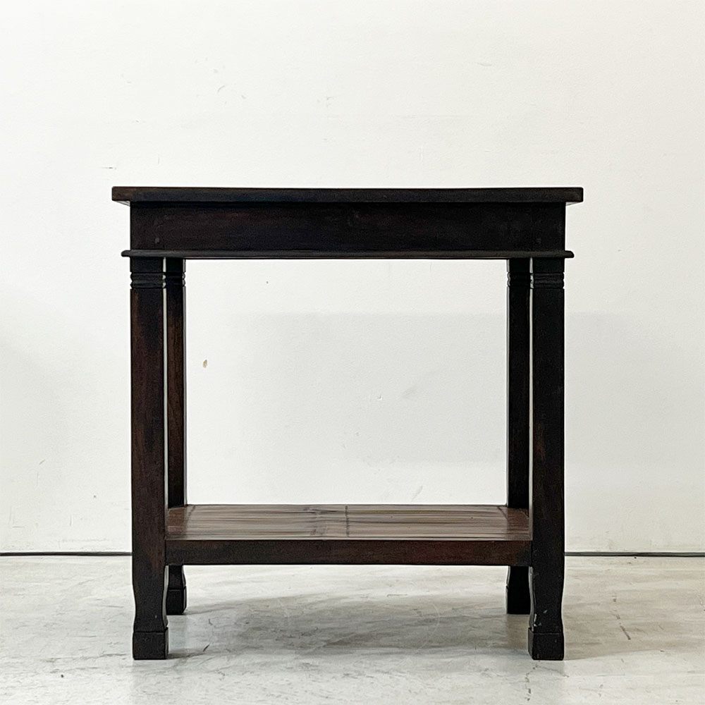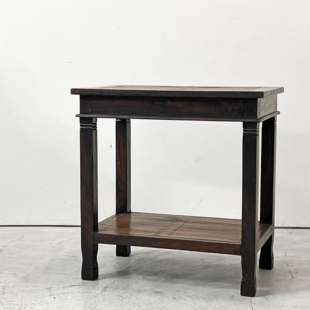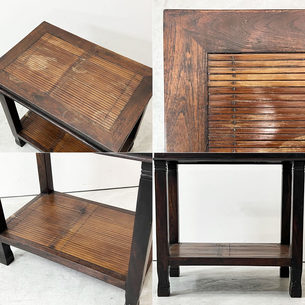 アジアン家具 サイドテーブル チーク古材 バンブー ナイトテーブル 花台 2段 ビンテージ リゾートテイスト ●