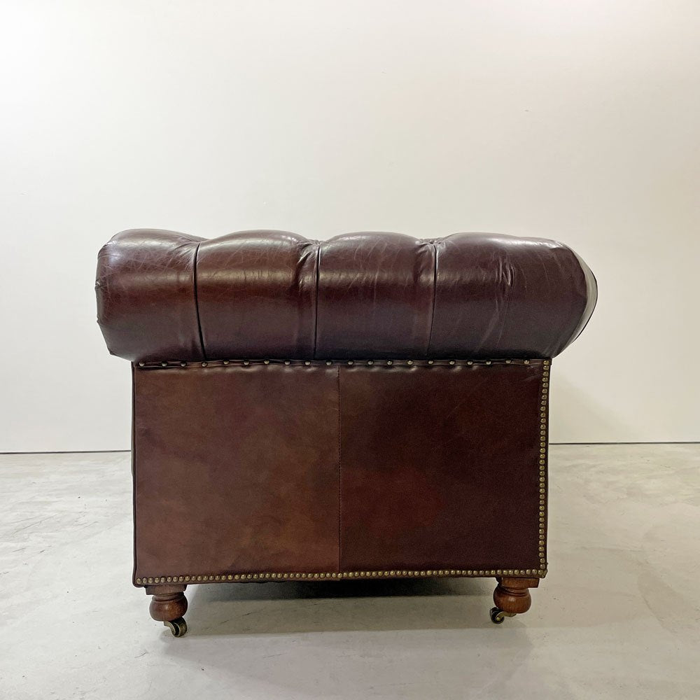 バックレストとアームにしっかりとボリュームを持たせ、チェスターフィールドスタイルに恥じない風格と優雅さを携えています。