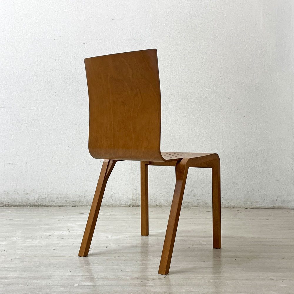 背もたれと座面が薄いプライウッドで一体成型されており、シンプルなスタイルながら高い技術力が垣間見えるお品物です。