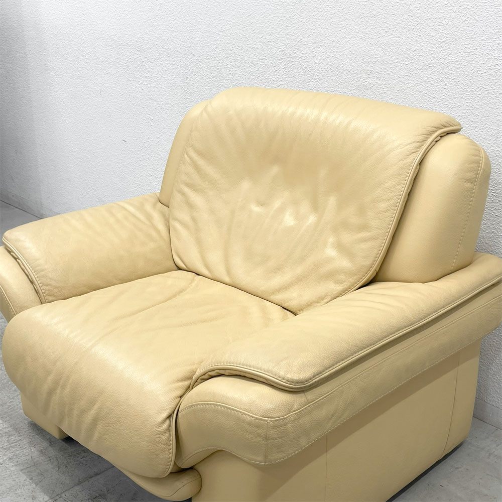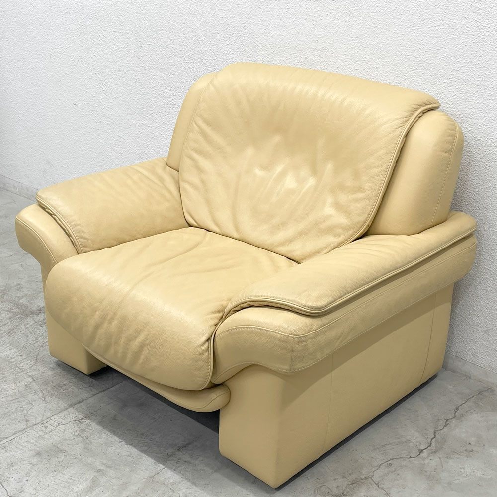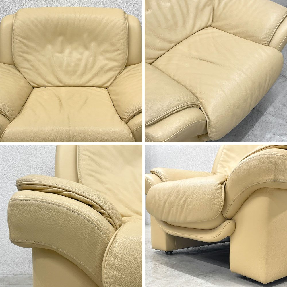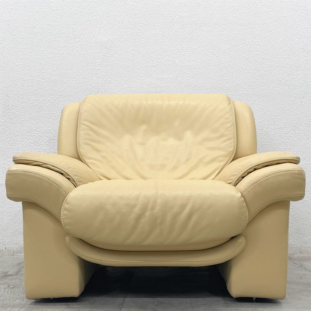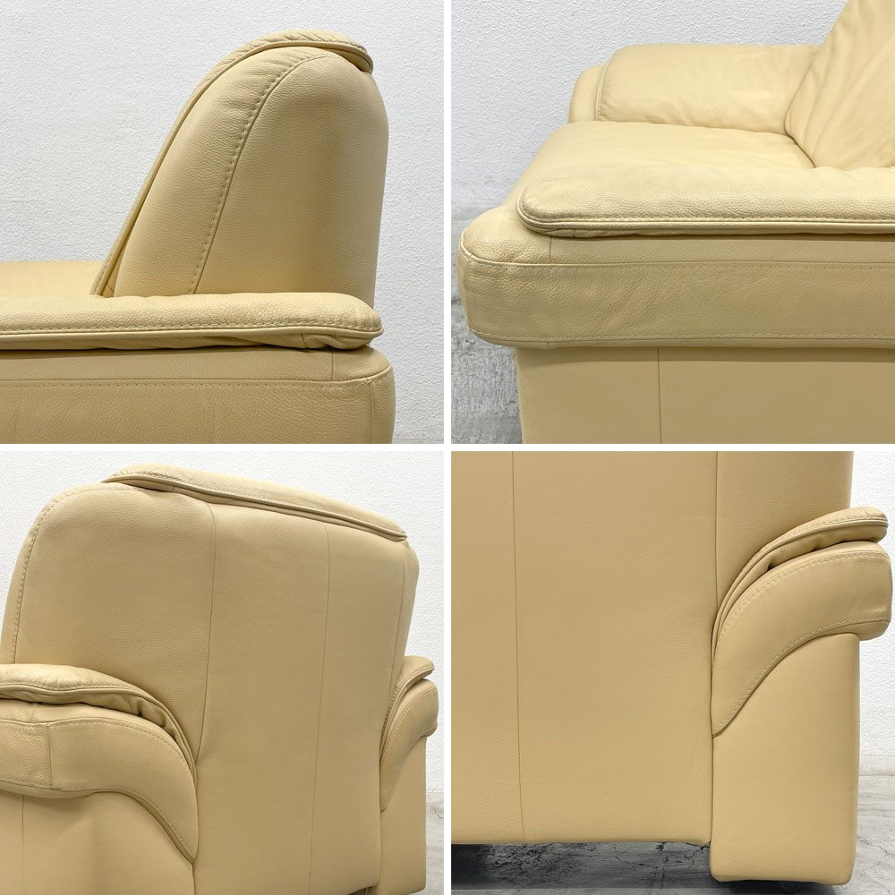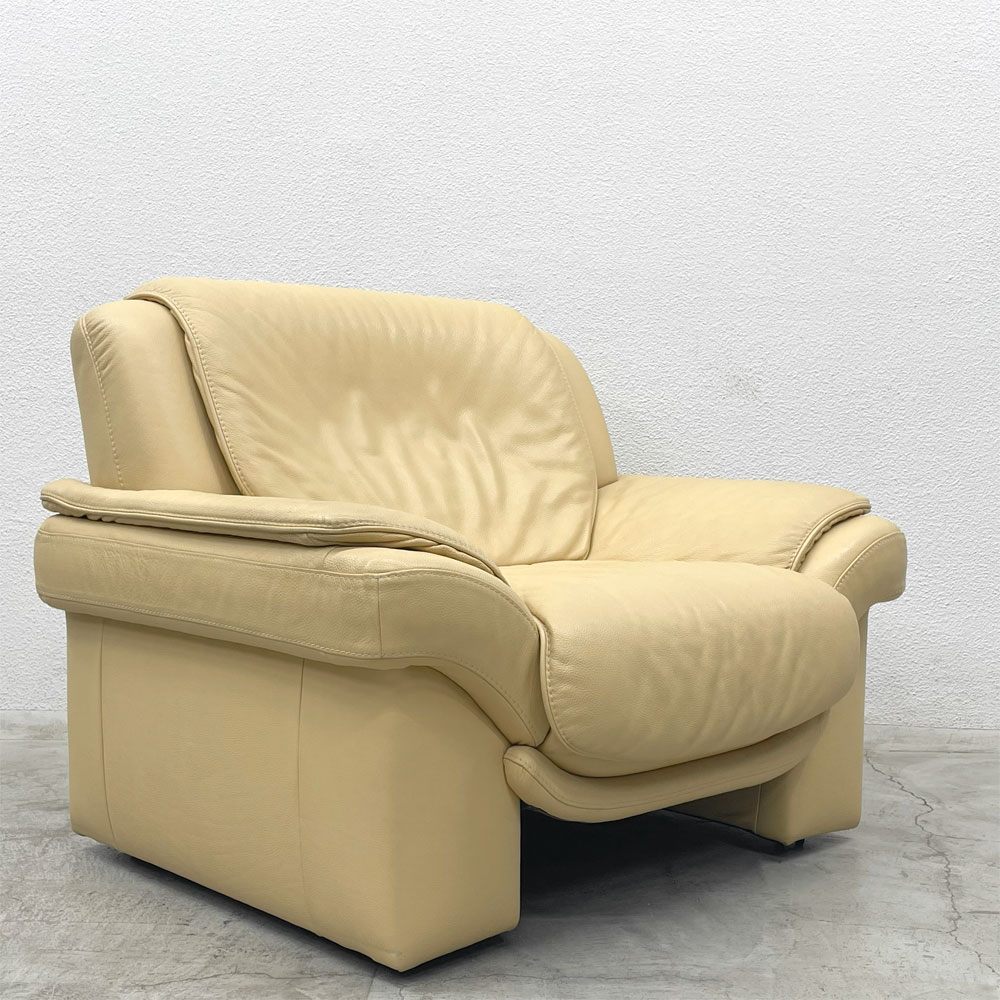 ヒモラ Himolla パシフィック PACIFIC 1シーターソファ レザー 本革 キャスター付き アイボリー系 ドイツ製 〓