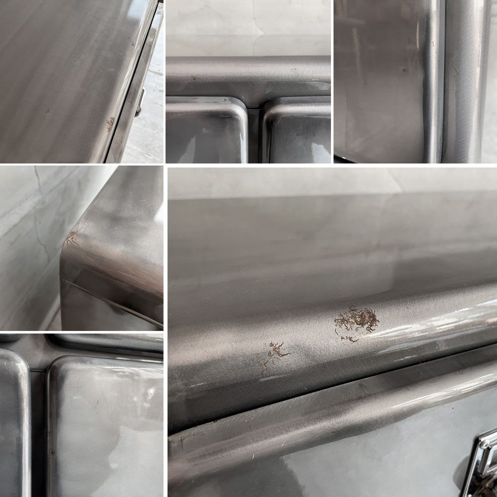 コチラのお品物は金属の質感を見せるRAW仕上げとなっており、溶接痕や研磨跡、サビや擦れ、塗装ムラなどがございますが製造時からの仕様となります。その他、使用に伴う傷や擦れなどがございますが、いずれも目立つ様なダメージではございません。USED品として概ね良好なコンディションを保っております。