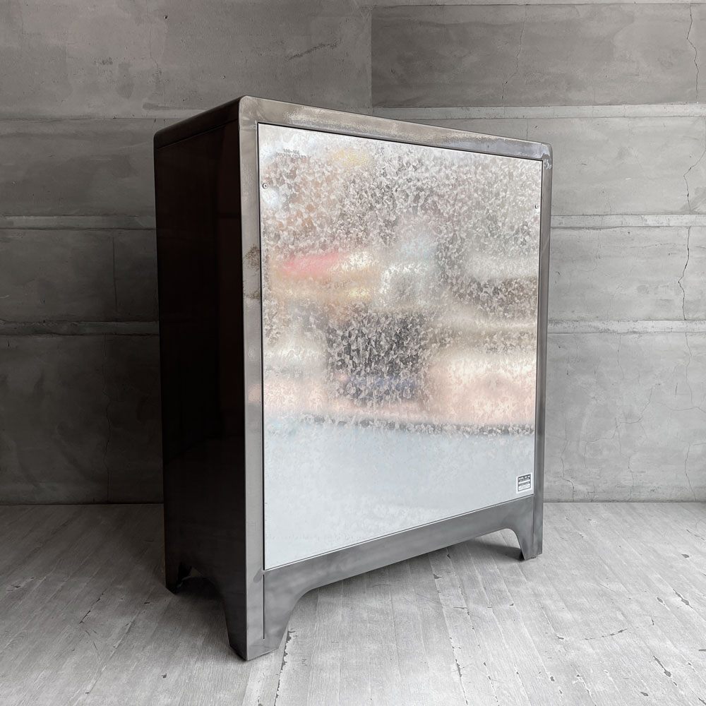 工業的なビジュアルと高い耐荷重を兼ね備えたガレージインテリアから収納家具として大変好評なメタルキャビネット。