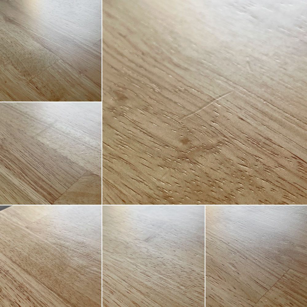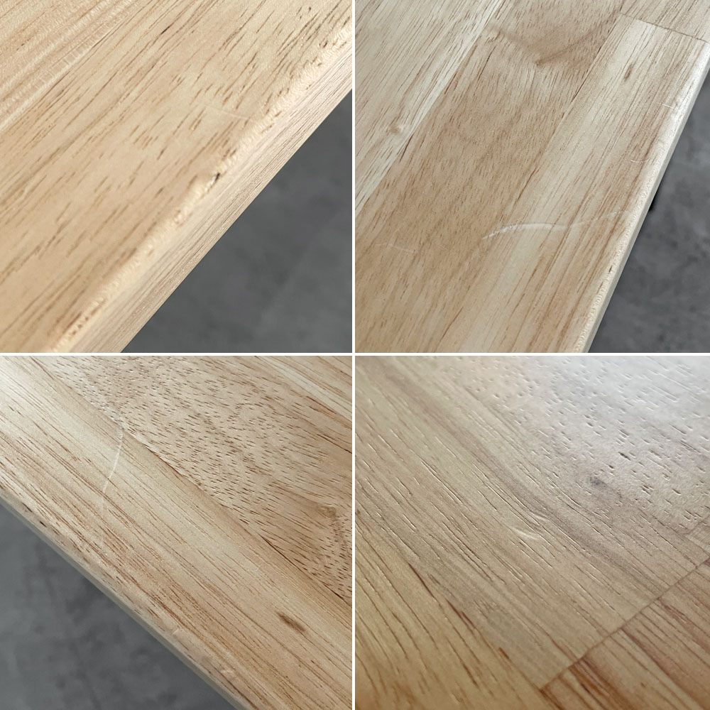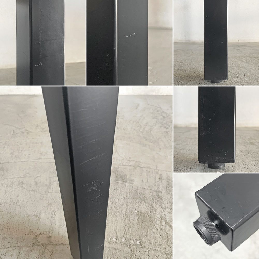 天板には細かな擦れや傷、打痕、角の削れが見受けられるとともに、スチールトレーや脚部にはペイントロスや擦れ傷、削れ、白っぽいくすみ汚れ等が散見されます。また、天板裏の脚を取り付ける部分の2箇所に鬼目ナットを新たに打ち直しています。脚を外すと別の鬼目ナットが現れますが、ご使用への影響はございません。その他、金具の一部に若干の錆やグライズの削れなどがございますが、がたつきやぐらつきといった目立ったダメージはございません。今後も安心して実用いただけるコンディションを保っております。なお接合部分にわずかな隙間が生じますが、もともとの仕様となります。