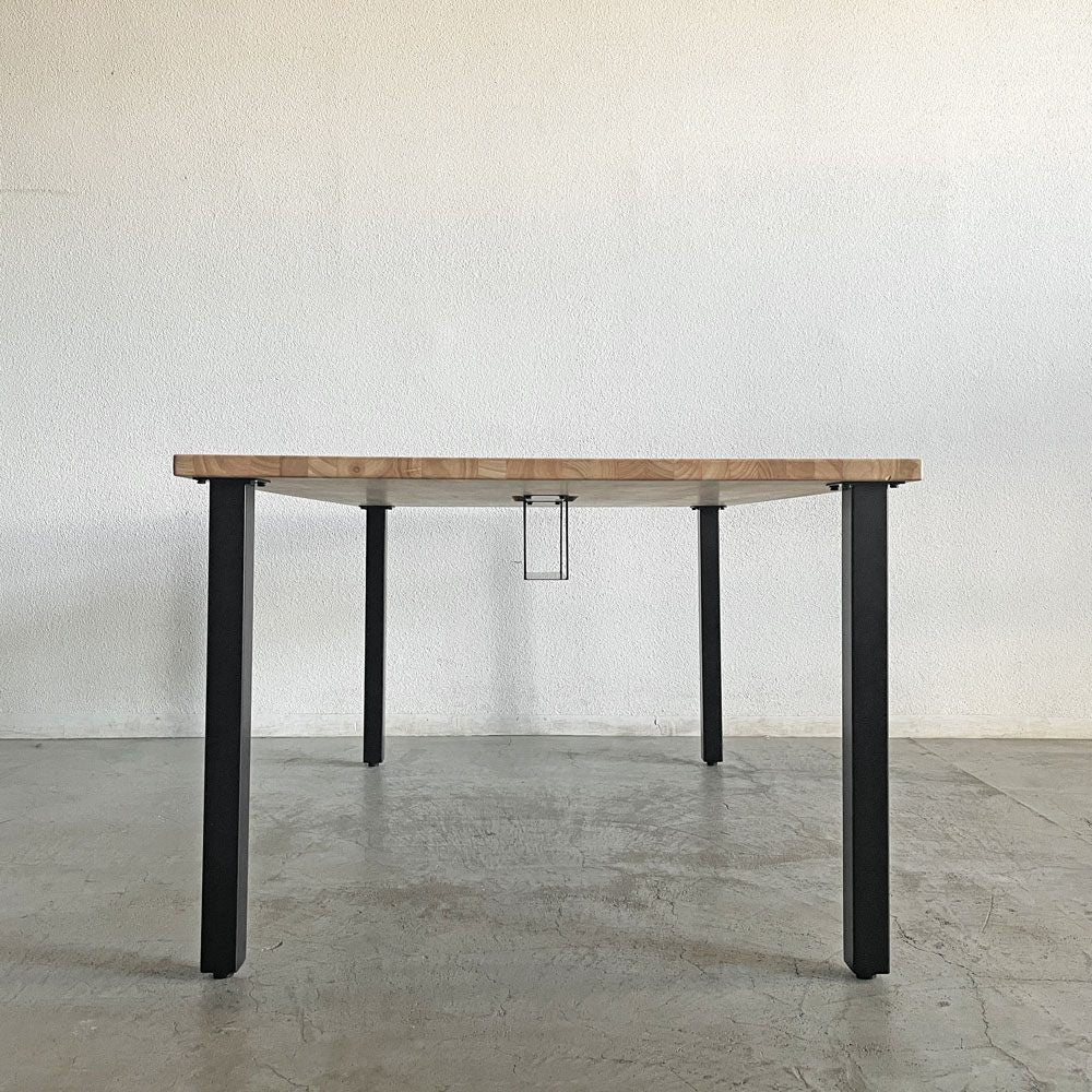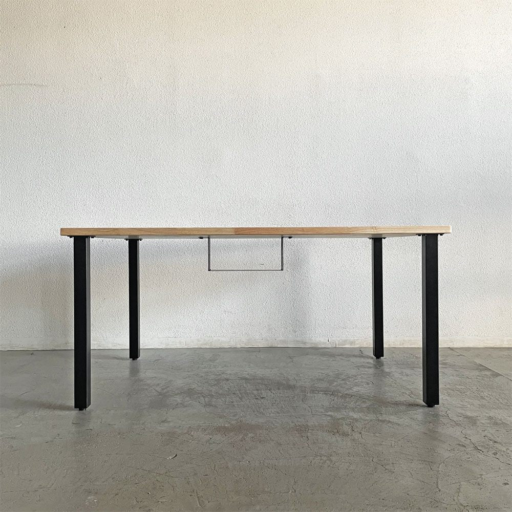 こちらは、すっきりとした角柱鉄脚に優しい雰囲気で人気のナチュラルなラバーウッド材天板を合わせた「ザ・テーブル | THE TABLE Black Steel」。中央に配線トレーを配した広々サイズのデスクです。