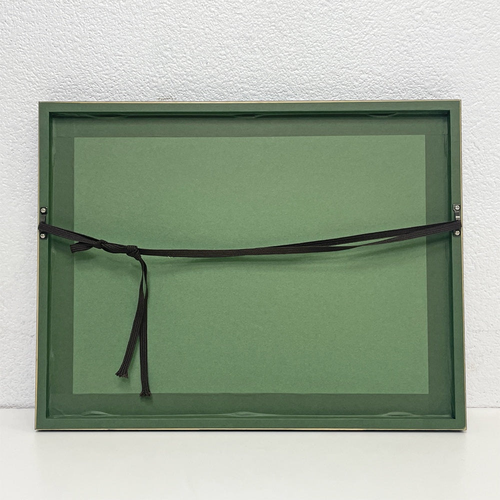 コレクションとしては勿論、お部屋のインテリアとしても日本の手狭な住宅事情に優しいコンパクトなサイズ感。トーンを抑えた作品の色合いに対し、フレームとマットのブラック&ホワイトが全体の印象を引き締め、空間にコントラストをきかせてくれます。