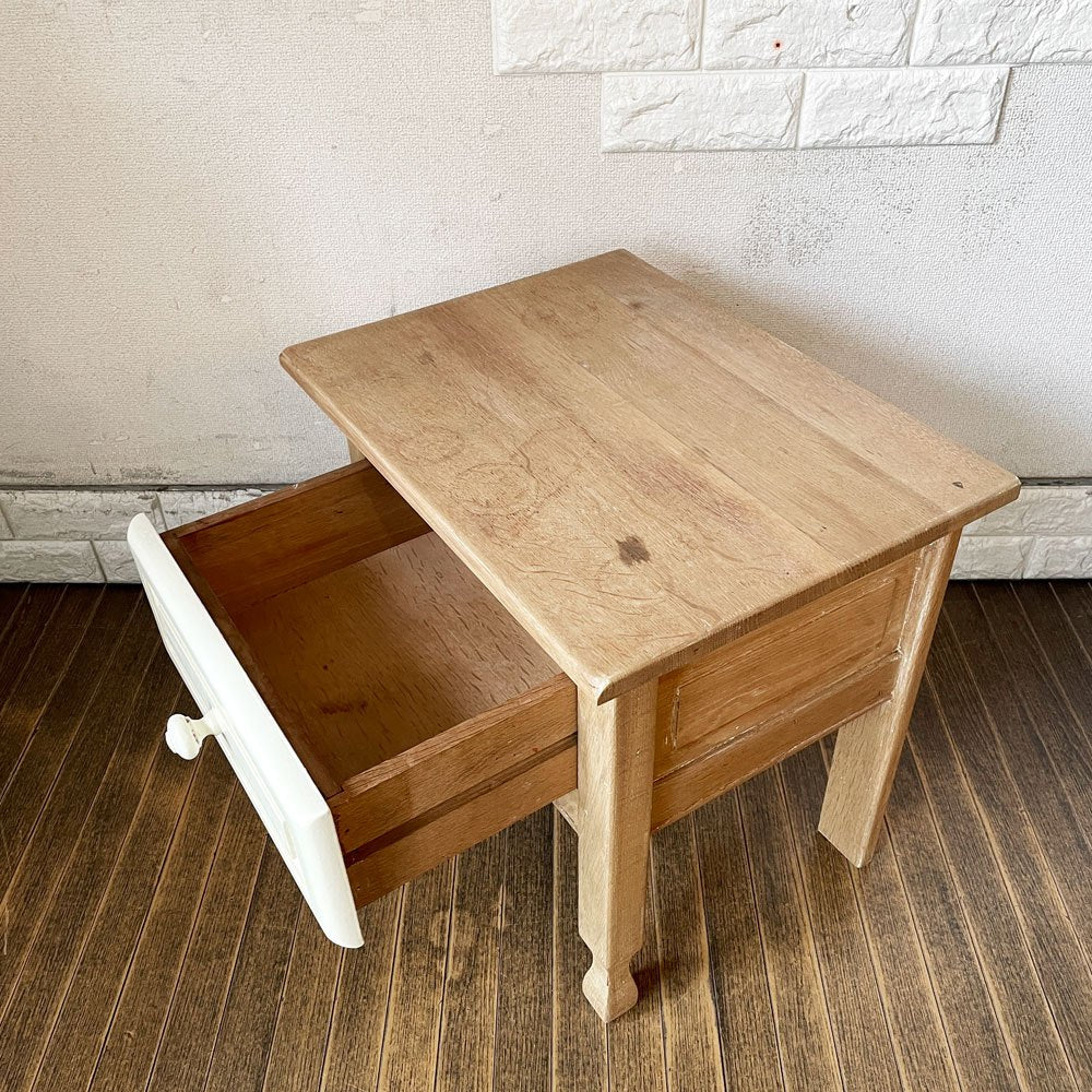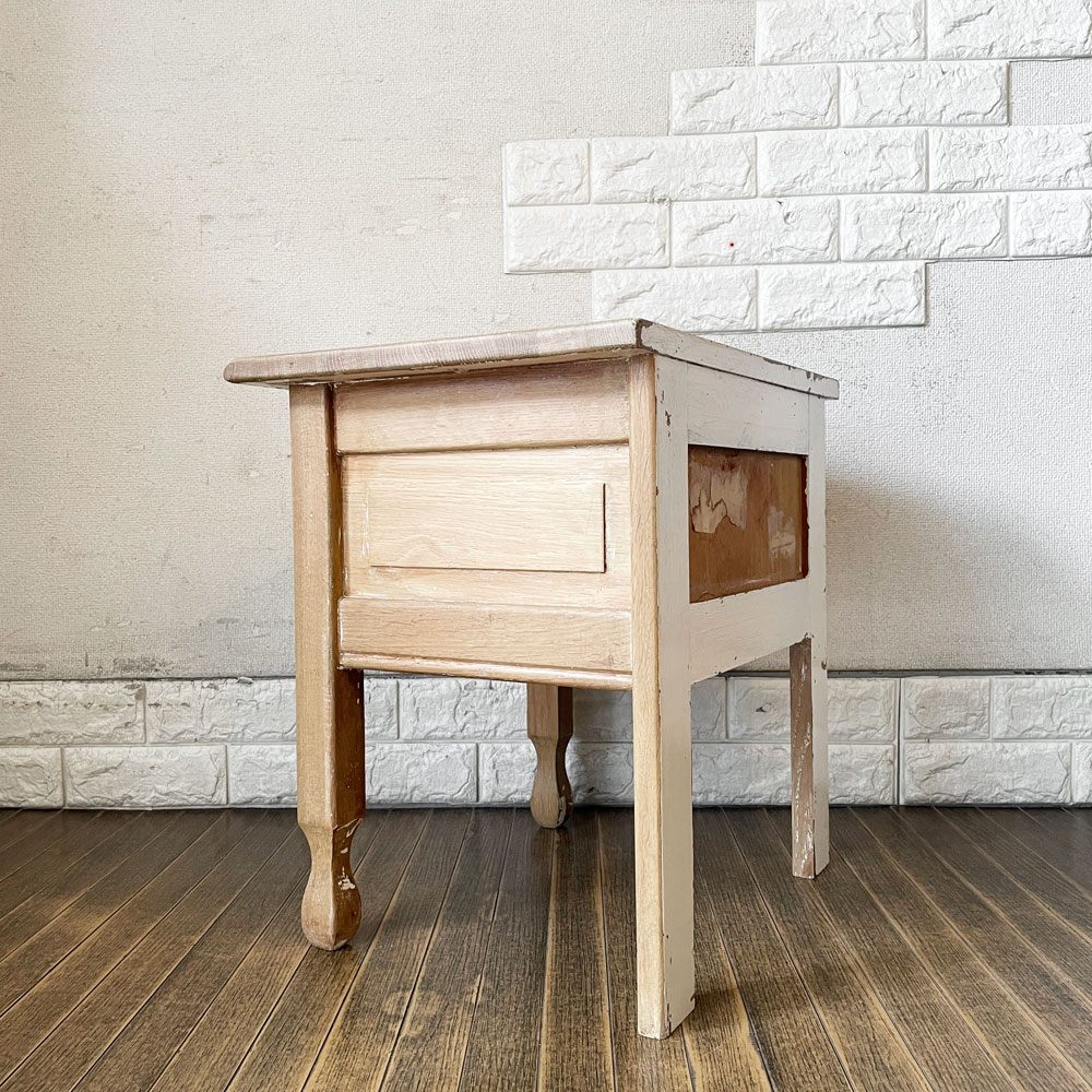 フランスのカントリー家具のような風合いをまとったナイトテーブルです。