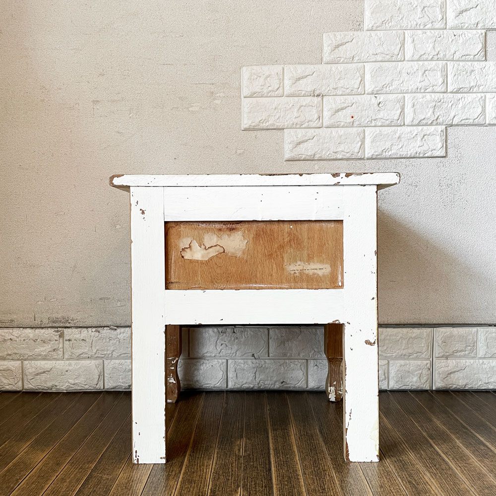 もともと全体に施されていたと思われる白い塗装をボディの背板と抽斗を除いて剥がした形跡が残るシャビーな1台。