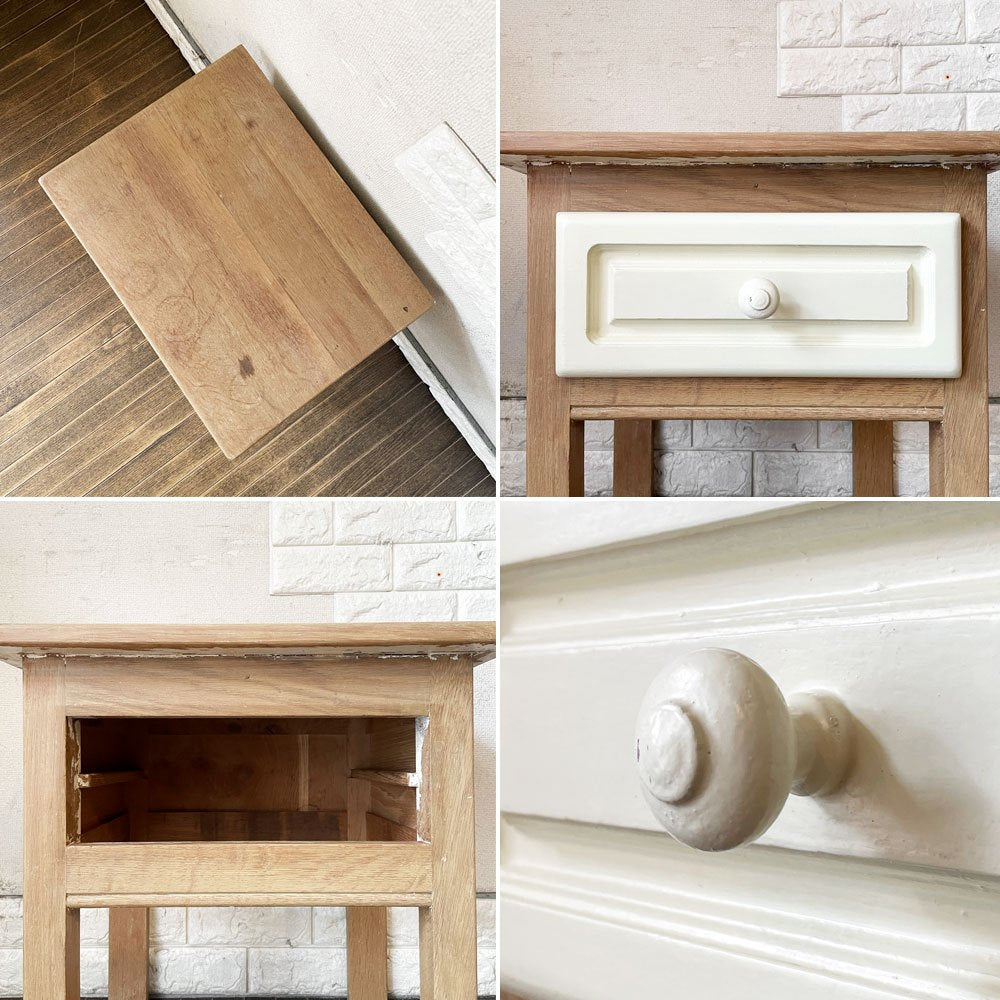ビンテージスタイル Vintage Style ホワイトペイント ナイトテーブル サイドテーブル 1ドロワー W50cm フレンチカントリースタイル シャビーシック ◎