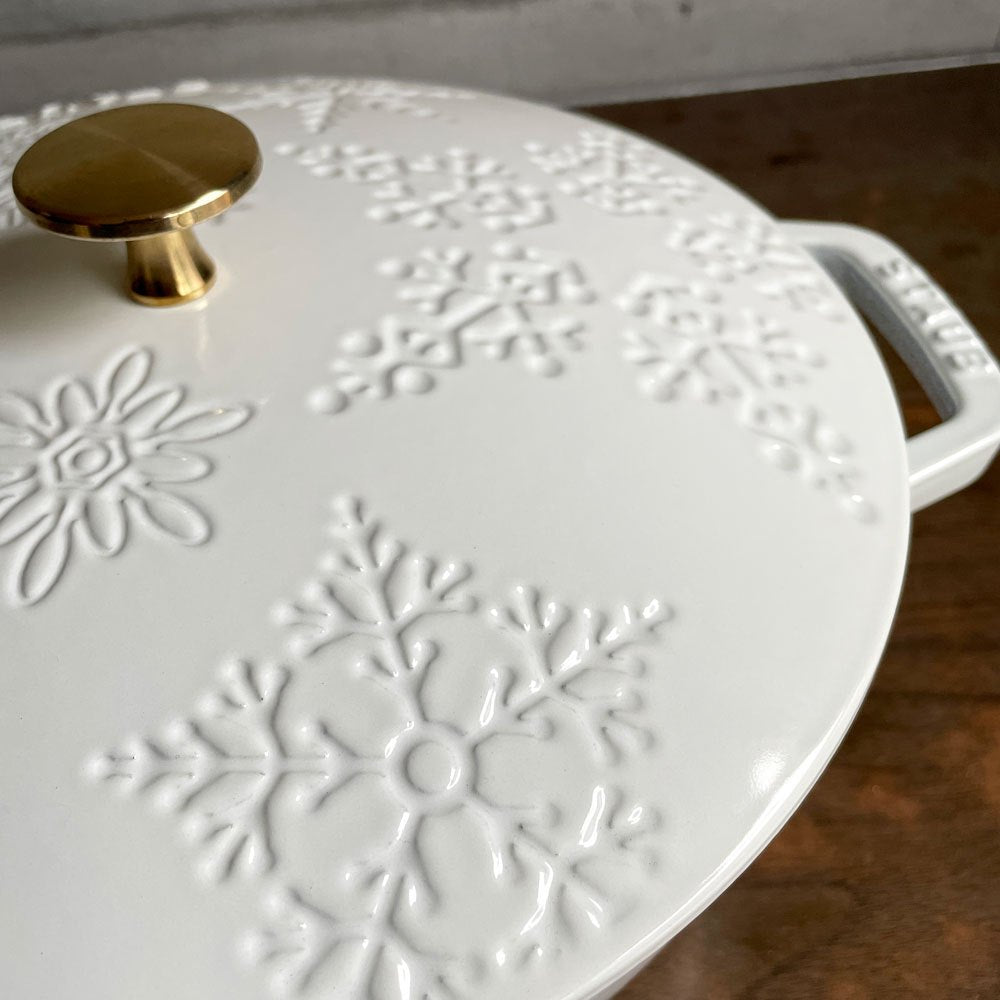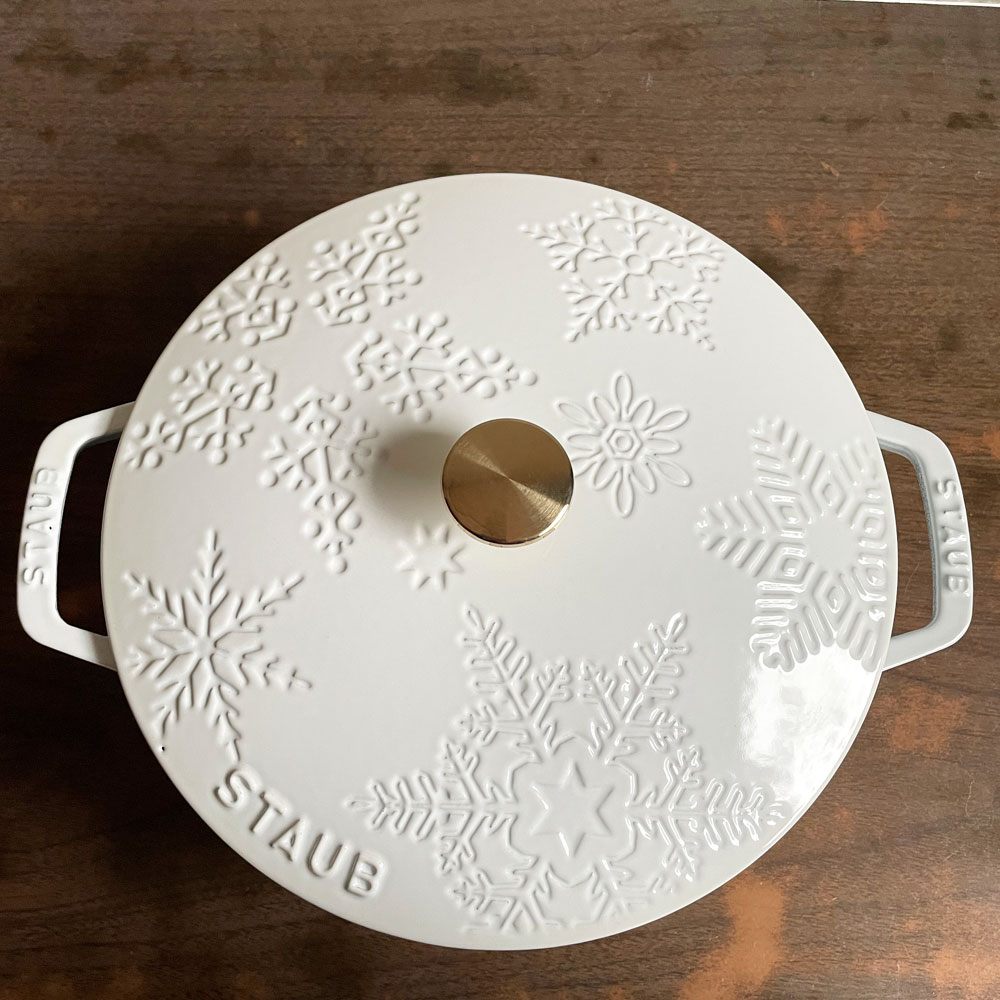 ストウブ STAUB スノークリスタル ココット 両手鍋 ホワイト 24cm 鋳物 キャセロール ガス オーブン IH対応 フランス プロテクター付き♪