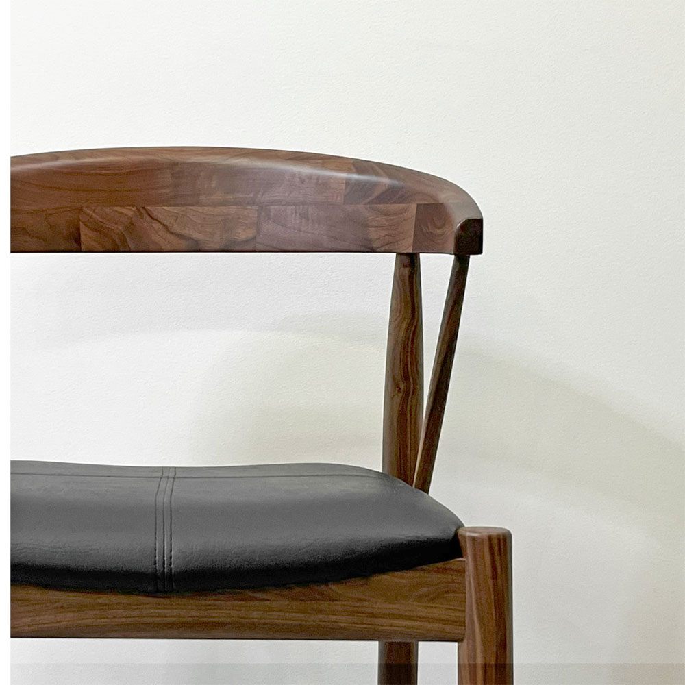 また、座面はブラックのPVCレザー。シックな雰囲気を醸し出すだけでなく、日々のお手入れが簡単な嬉しい仕様です。