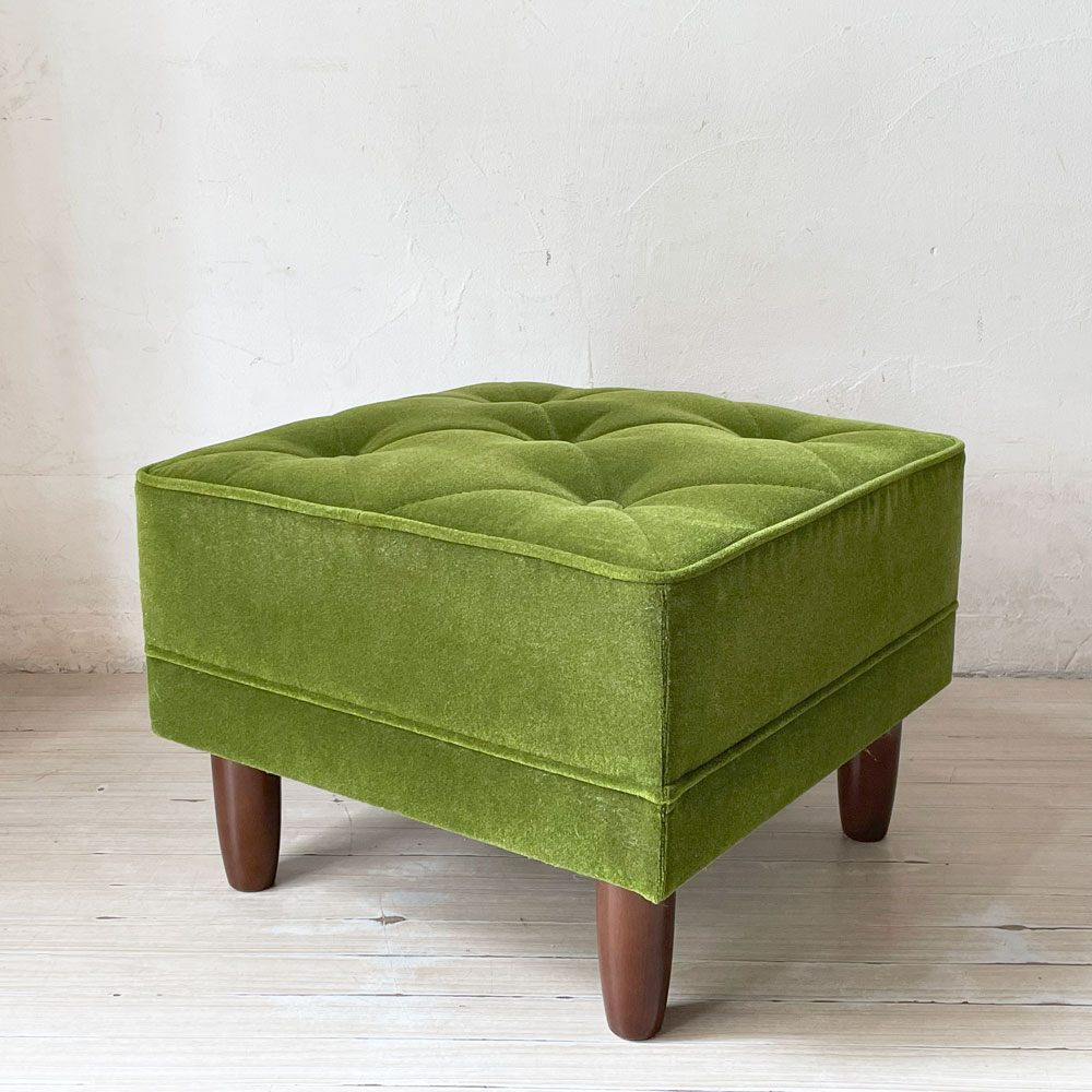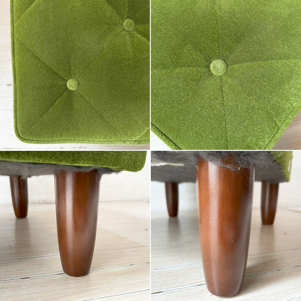 カリモク60 オットマン スツール モケットグリーン Kチェア ロビーチェア ミッドセンチュリー レトロモダン 定価¥34,980- ★