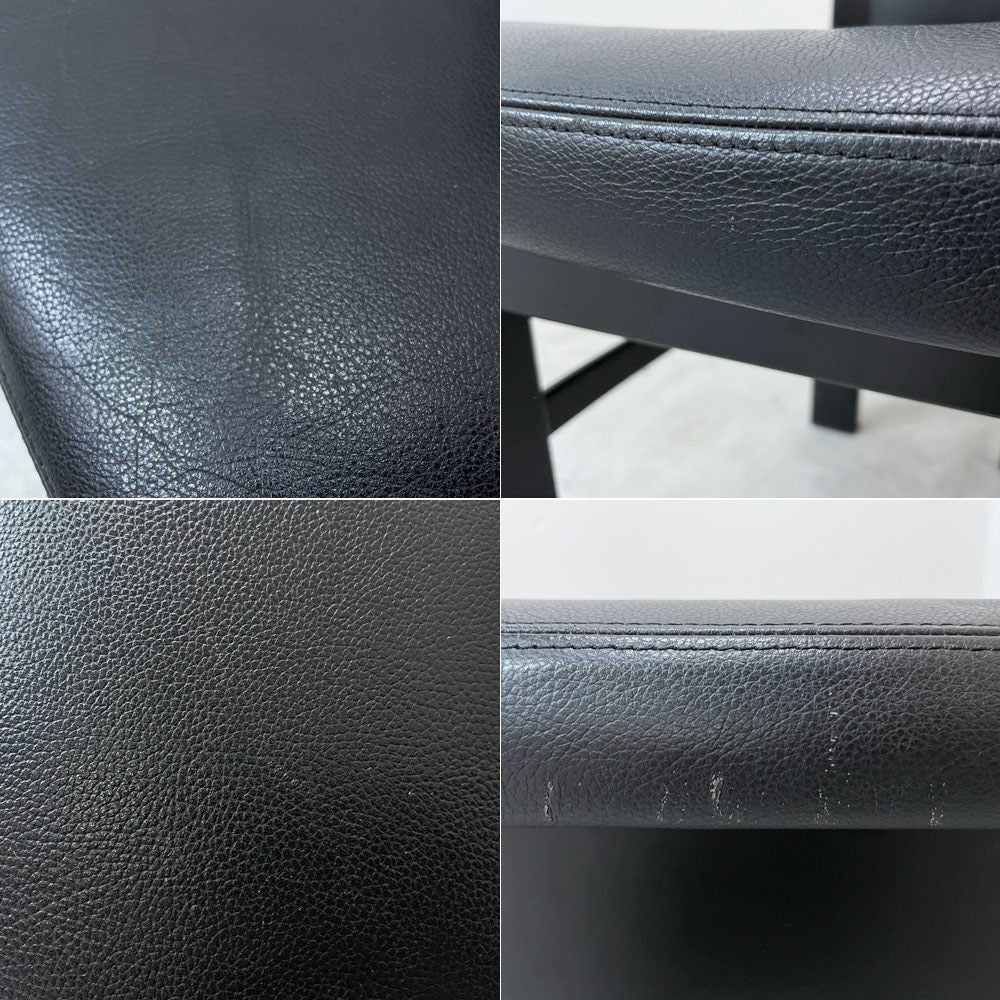 使用に伴い、木部フレームに軽微な打痕や小傷、擦れ、背面・座面のレザー部には、小傷や擦れがございますが、どれも目立つものではございません。その他、ぐらつきや大きなダメージ等も無く、まだまだ安心してお使い頂けるコンディションを保っております。